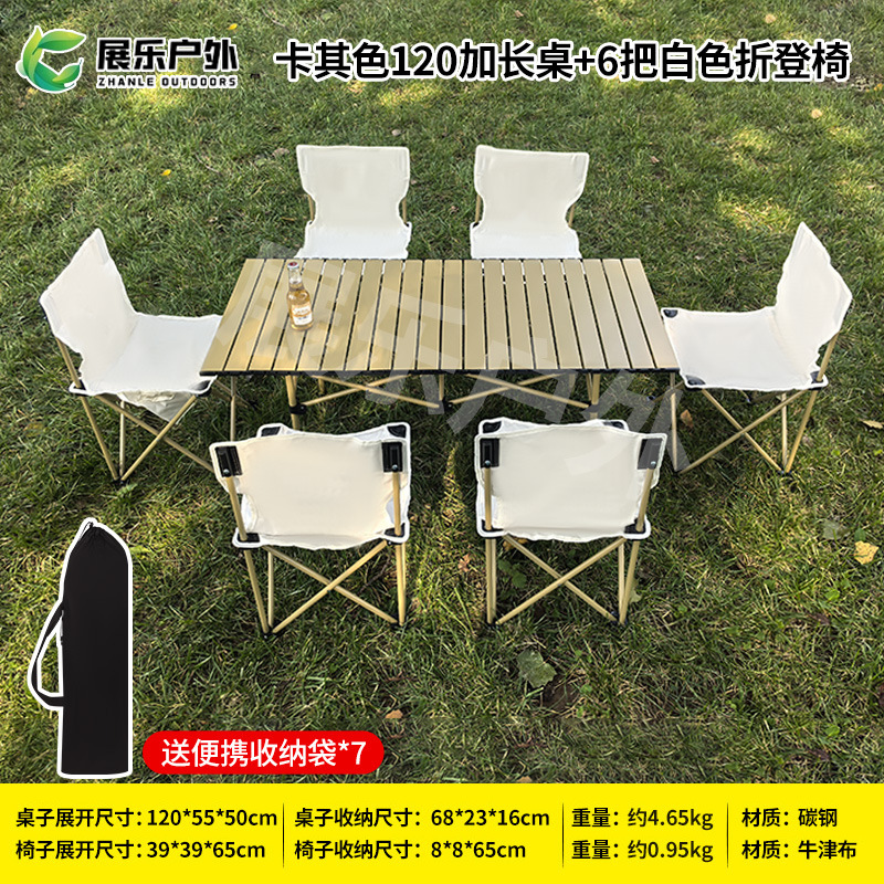 • 카키 120 확장 테이블 + 흰색 접이식 의자 6개