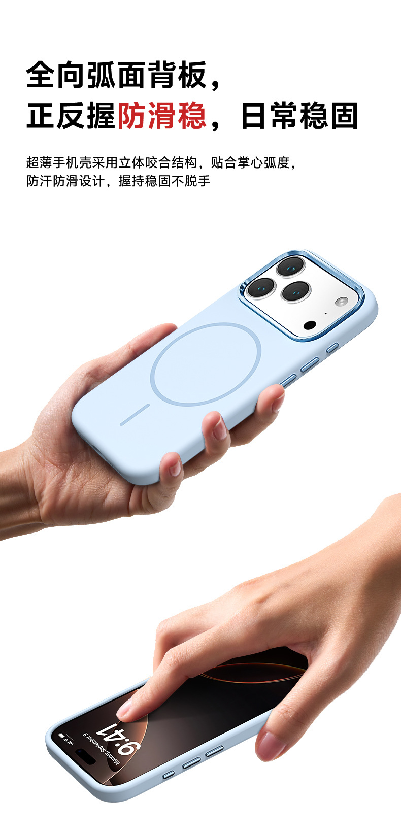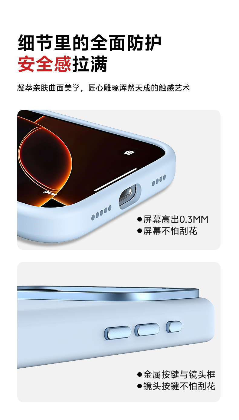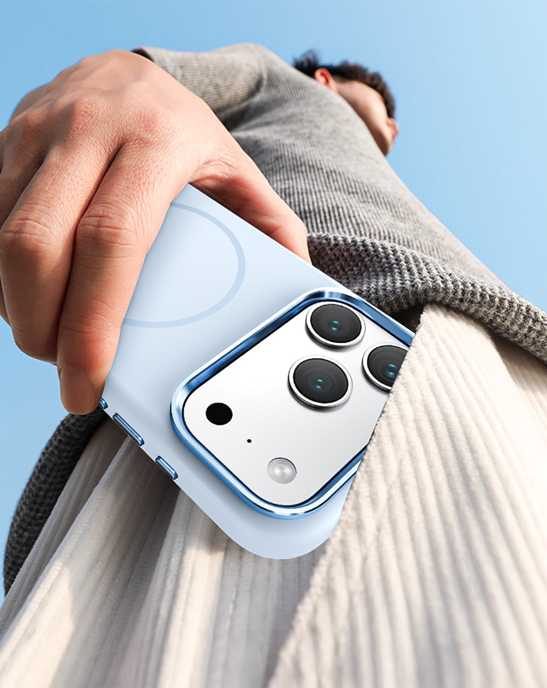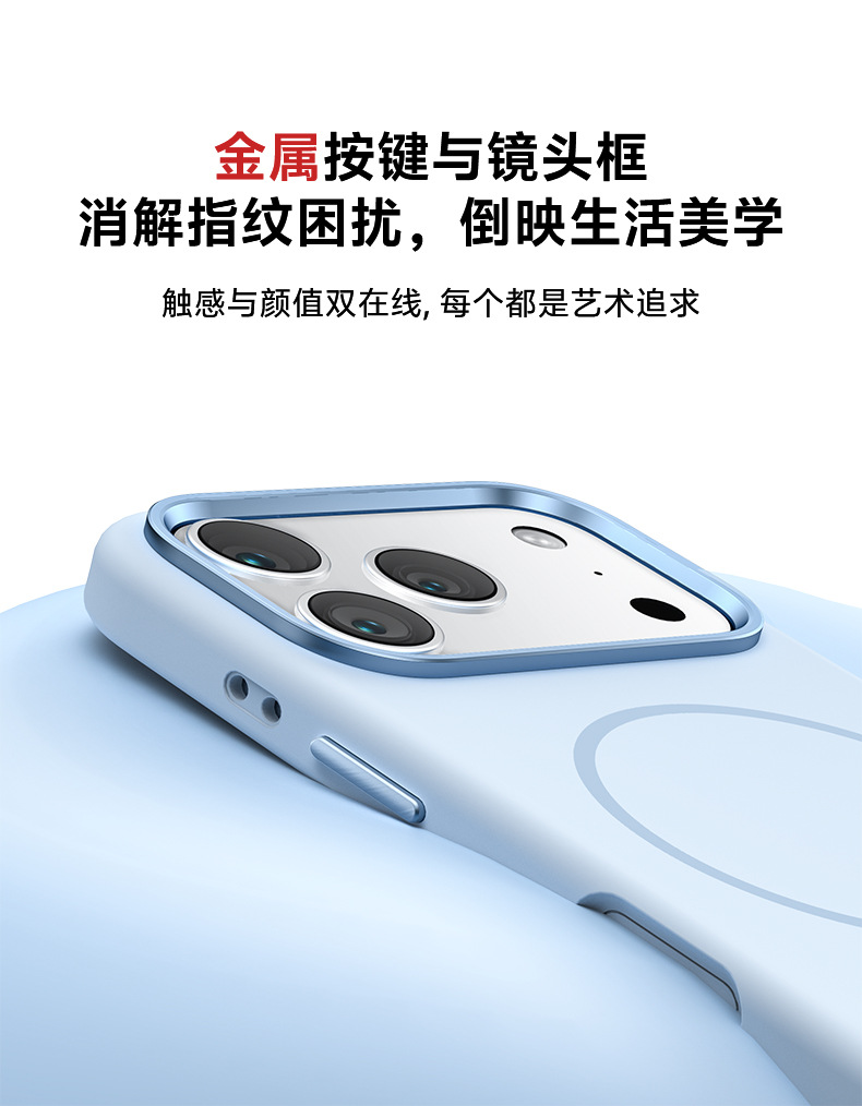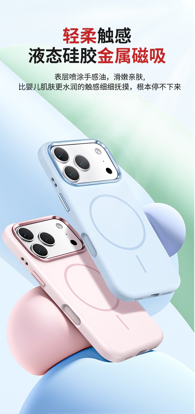 iPhone17 자기 금속 렌즈 보호 휴대 전화 케이스에 적합 액체 실리콘 비즈니스 간단한 휴대 전화 보호 커버스토어 가기