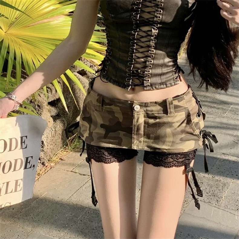 아메리칸 핫걸 로우 웨이스트 슬리밍 A 라인 작업복 스타일 카모 스커트 여성용 새 슈퍼 짧은 스커트 나이트 클럽 짧은 복고풍