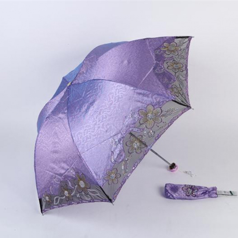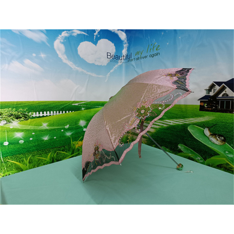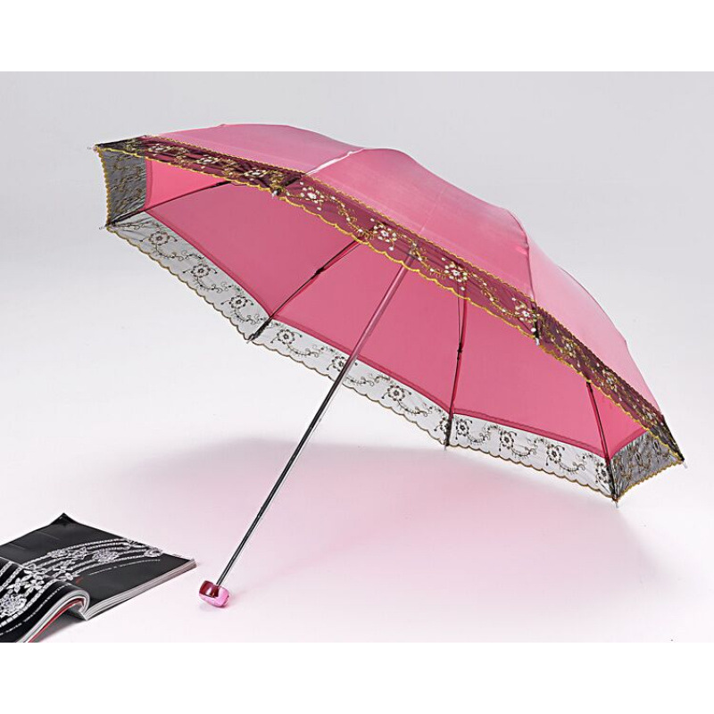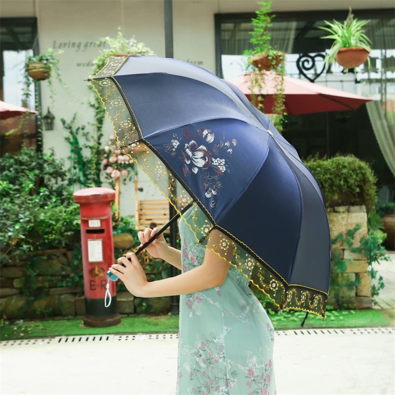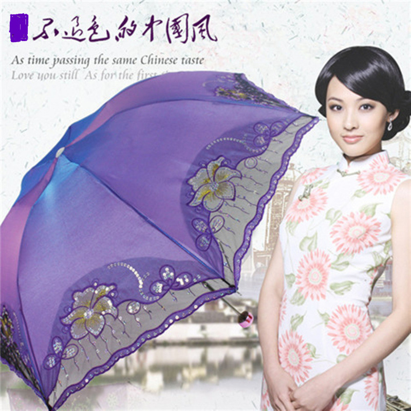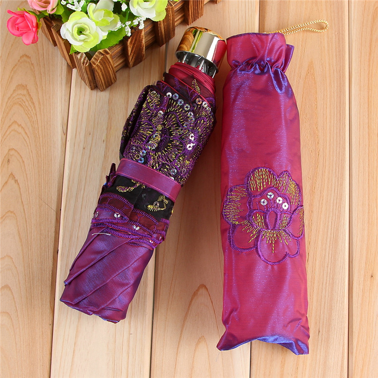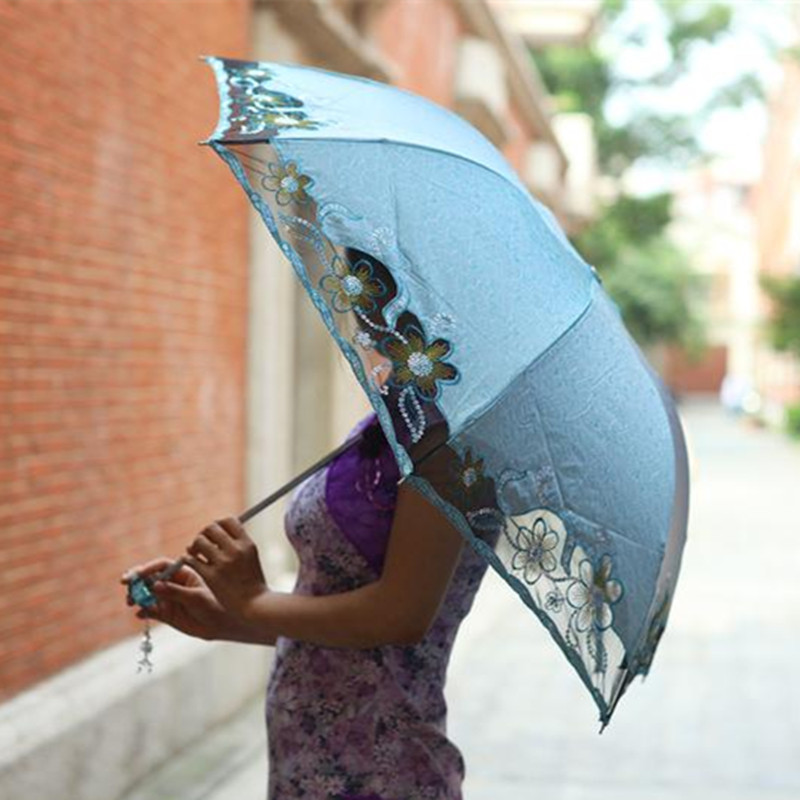 ✅ 여성용 레이스 자수 태양 우산, 자외선 차단, 자외선 여신, 소형, 휴대용, 그라데이션 색상 자수