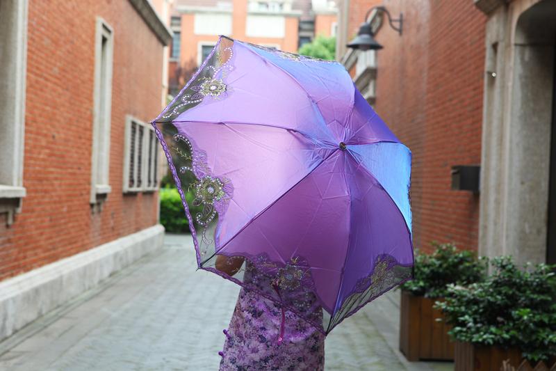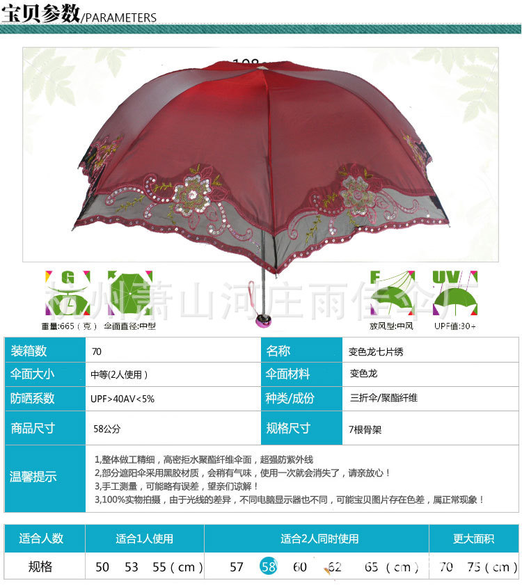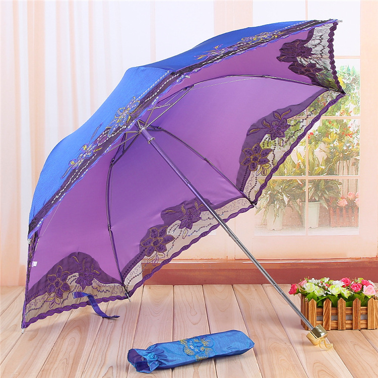 ✅ 여성용 레이스 자수 태양 우산, 자외선 차단, 자외선 여신, 소형, 휴대용, 그라데이션 색상 자수스토어 가기