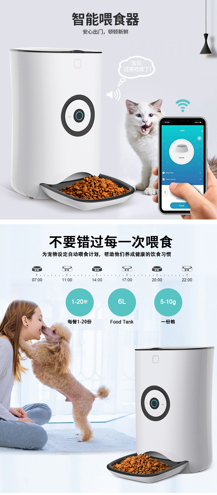 APP 휴대 전화 스마트 애완 동물 자동 먹이 공급기 WIFI 무선 타이밍 정량 고양이 먹이 스마트 먹이 기계