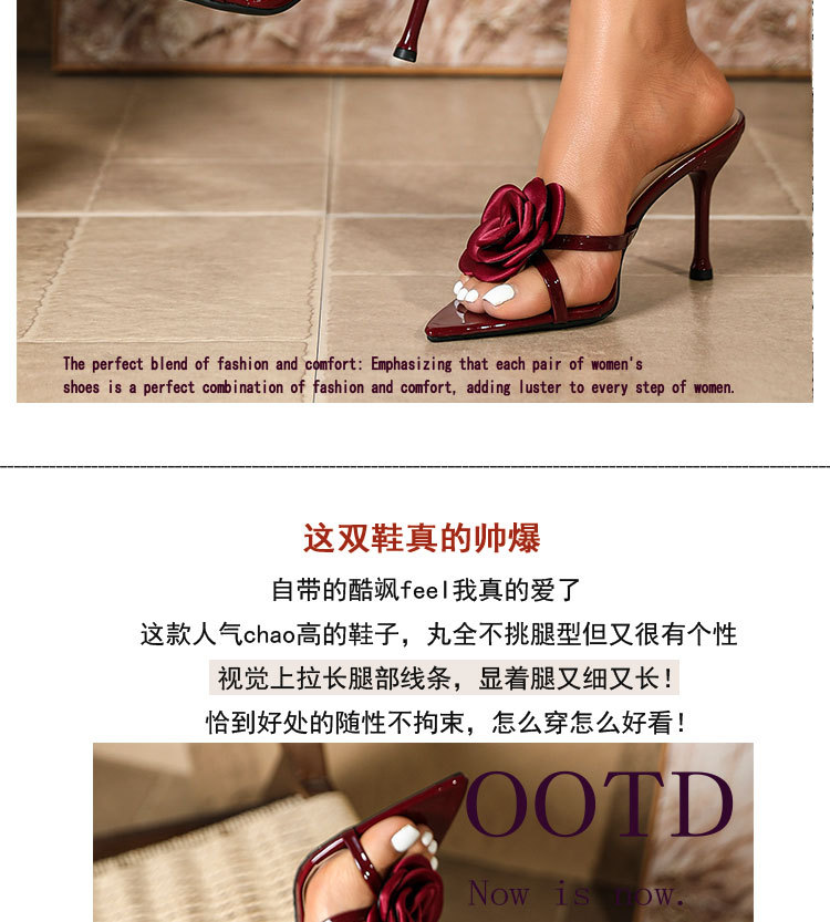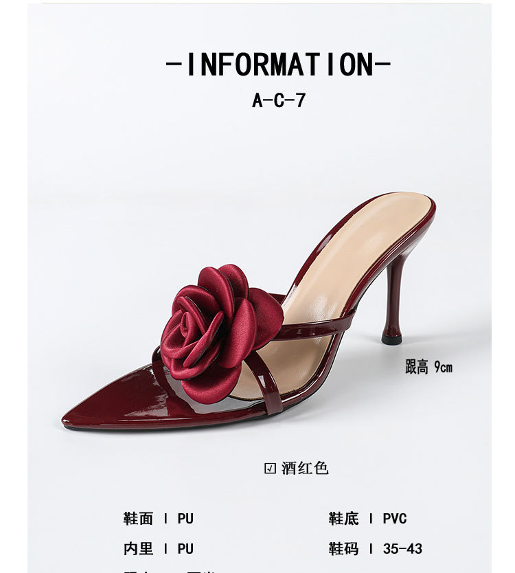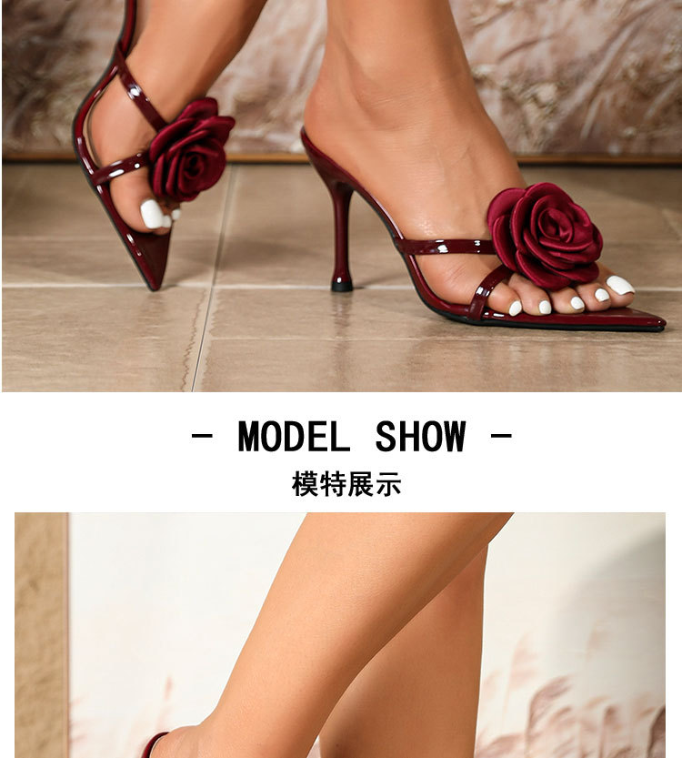 국경 간 2024 유럽과 미국의 대외 무역 새로운 여성 신발 뾰족한 꽃 스틸레토 하이힐 실크 원 스트랩 샌들 J-332-1스토어 가기