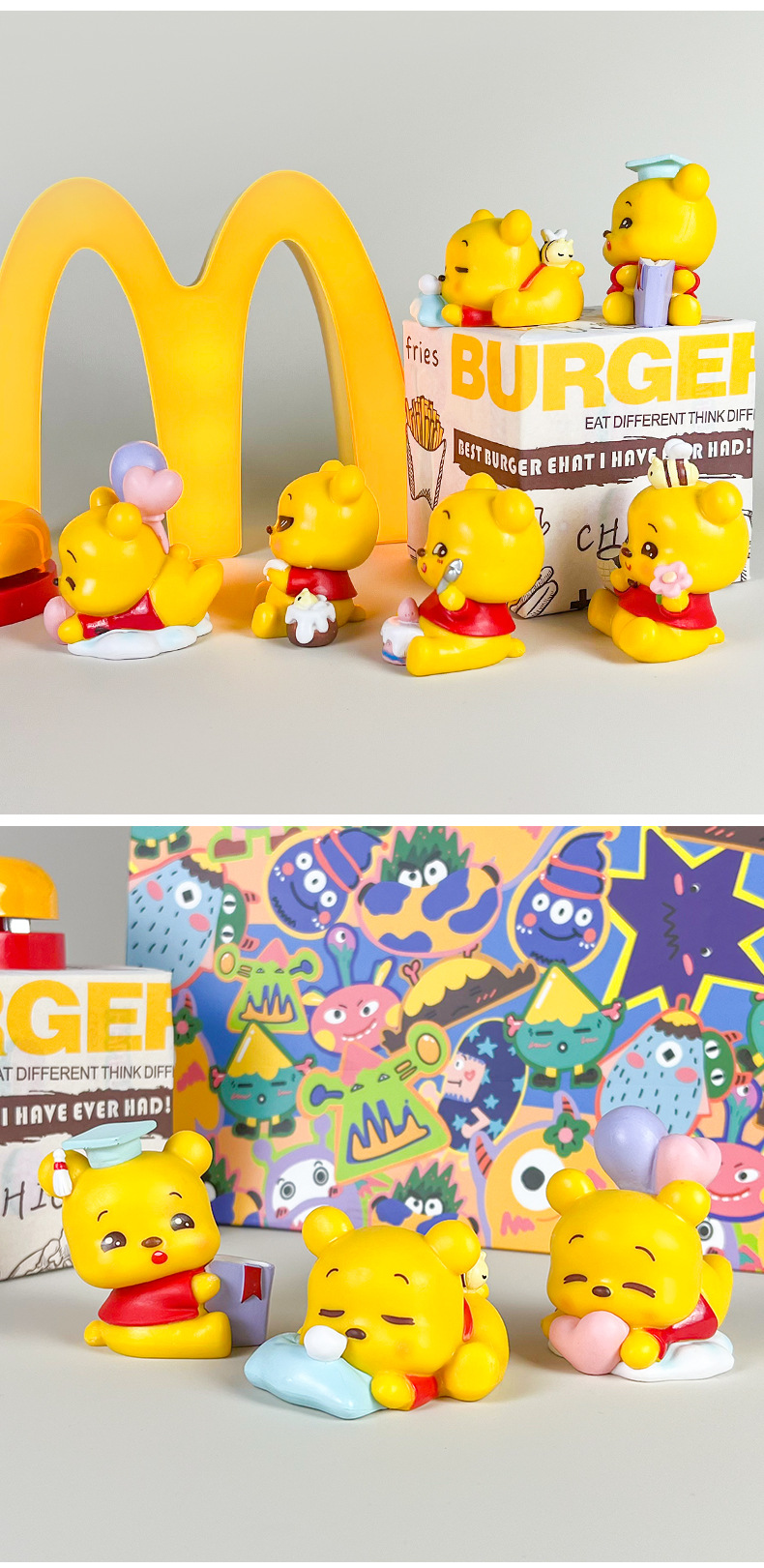 똥똥 곰 위니 푸우 손으로 만든 애니메이션 블라인드 박스 귀여운 만화 소녀 분위기 놀이 모델 장식품 창조적 인 선물스토어 가기