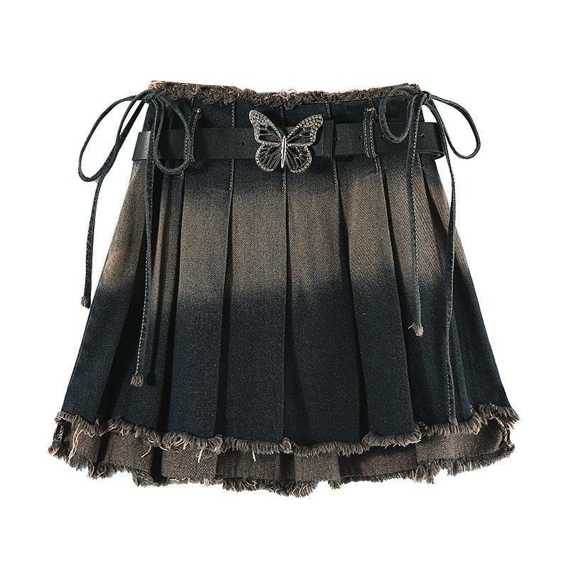 핫 걸 스위트 프라이드 스트리트 데님 미니 스커트 여성 올 매치 하이 웨이스트 슬리밍 디자인 센스 불규칙한 주름 치마스토어 가기