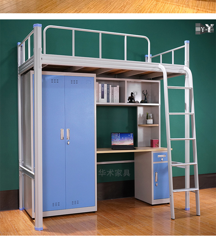 침대와 테이블 조합 철제 프레임 침대 직원 기숙사 상단 침대 및 하단 캐비닛 일체형 침대 계단 아파트 침대 학생용 높낮이 침대