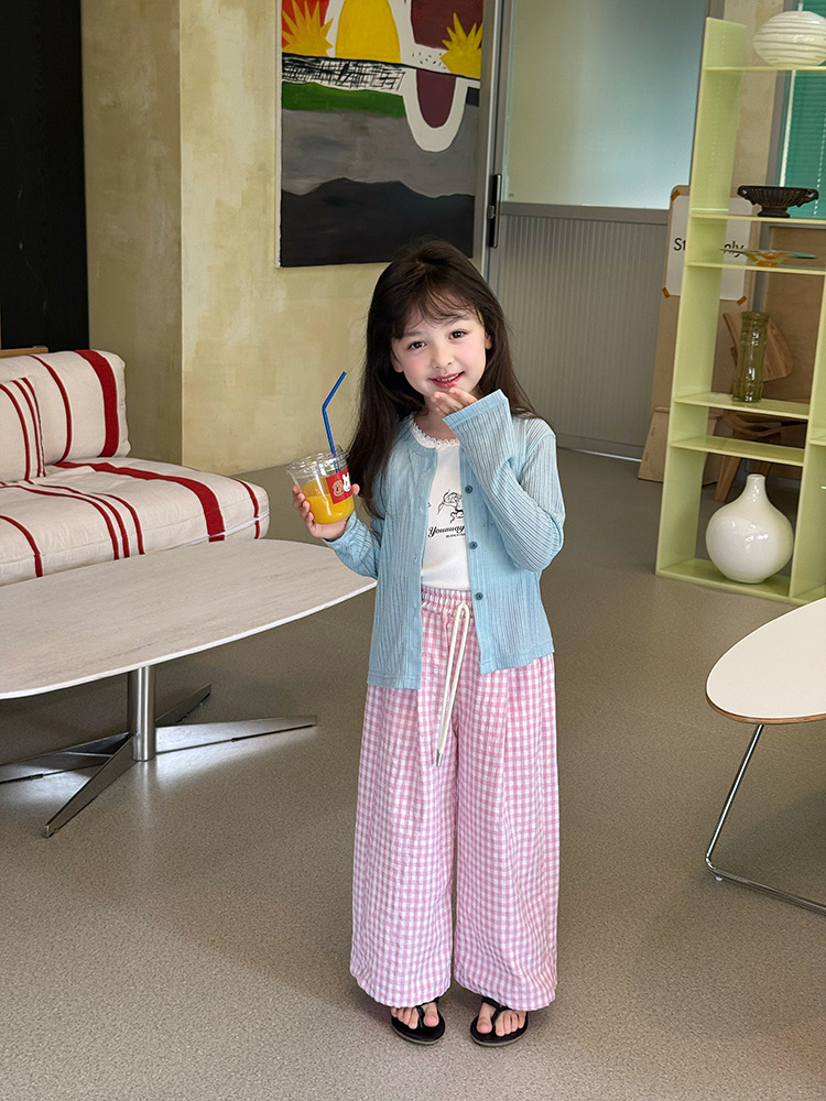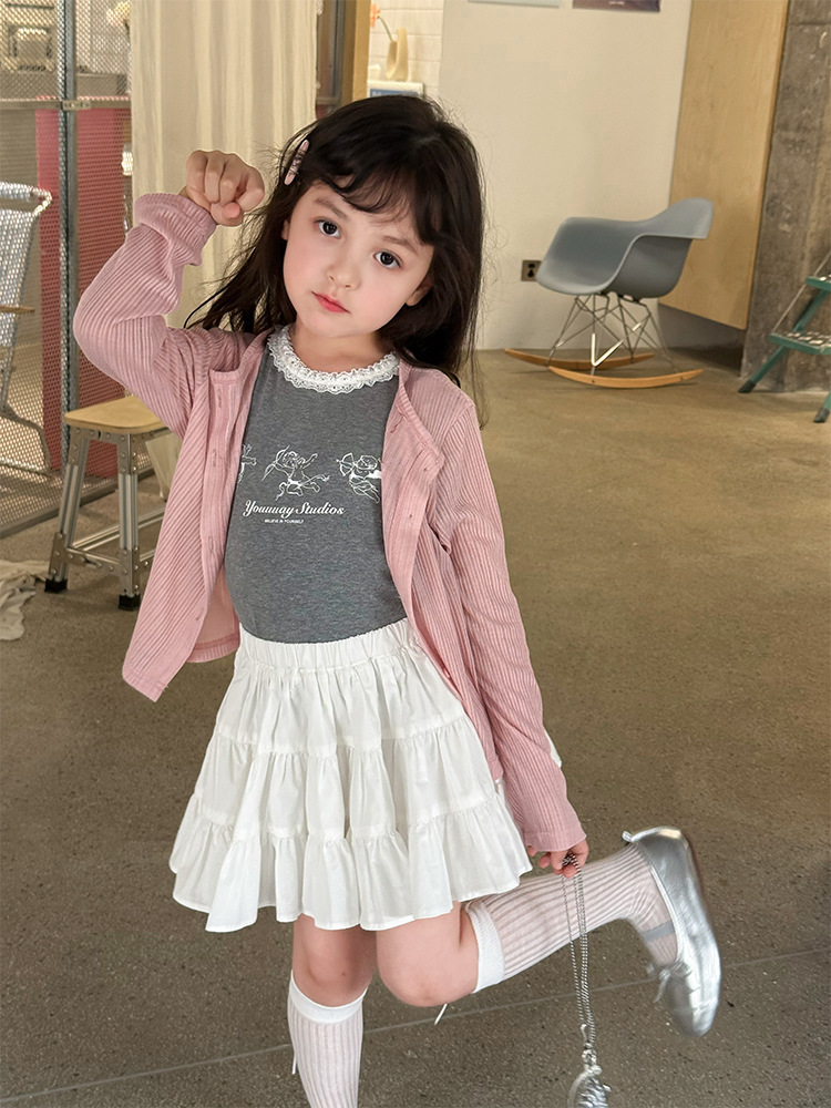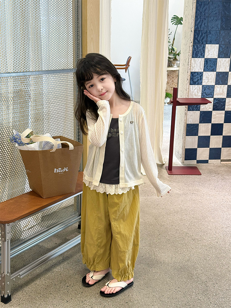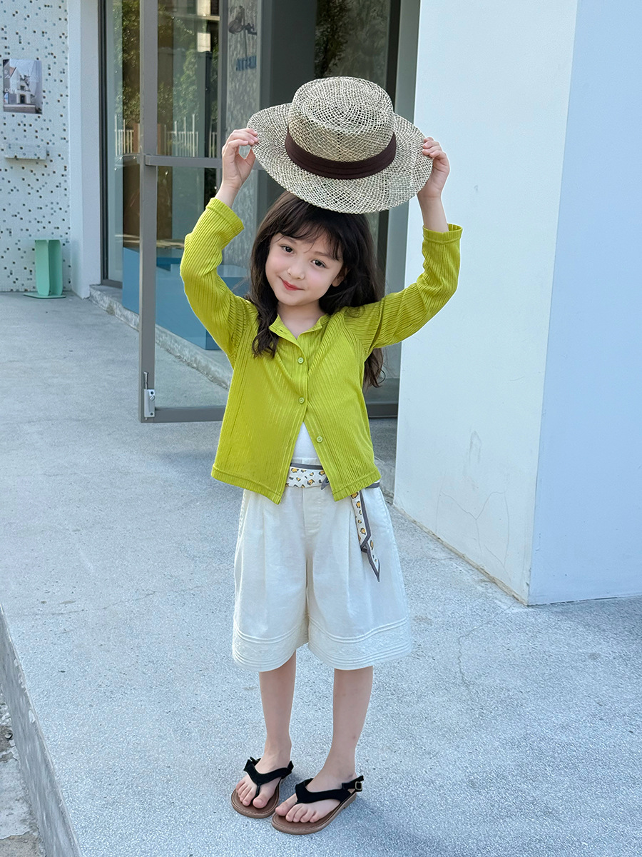 Elmo Beibei 아동용 얇고 세련된 에어컨 셔츠 아동복 소녀 한국식 단색 핏 스트립 자외선 차단 카디건 재킷
