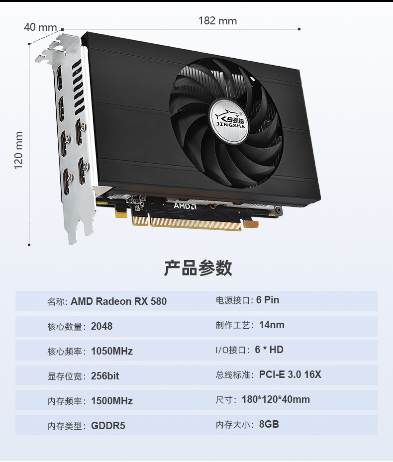 Jinsha AMD RX580 8GB 그래픽 카드는 대형 게임용 데스크탑 컴퓨터 독립 그래픽 카드 256Bit를 사용할 수 있습니다.스토어 가기