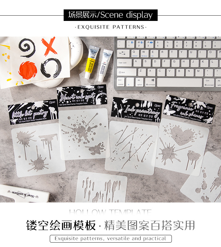 국경 간 잉크 염료 심장 수채화 후광 손으로 쓴 신문 중공 템플릿 어린이 유화 스틱 페인팅 템플릿 도매