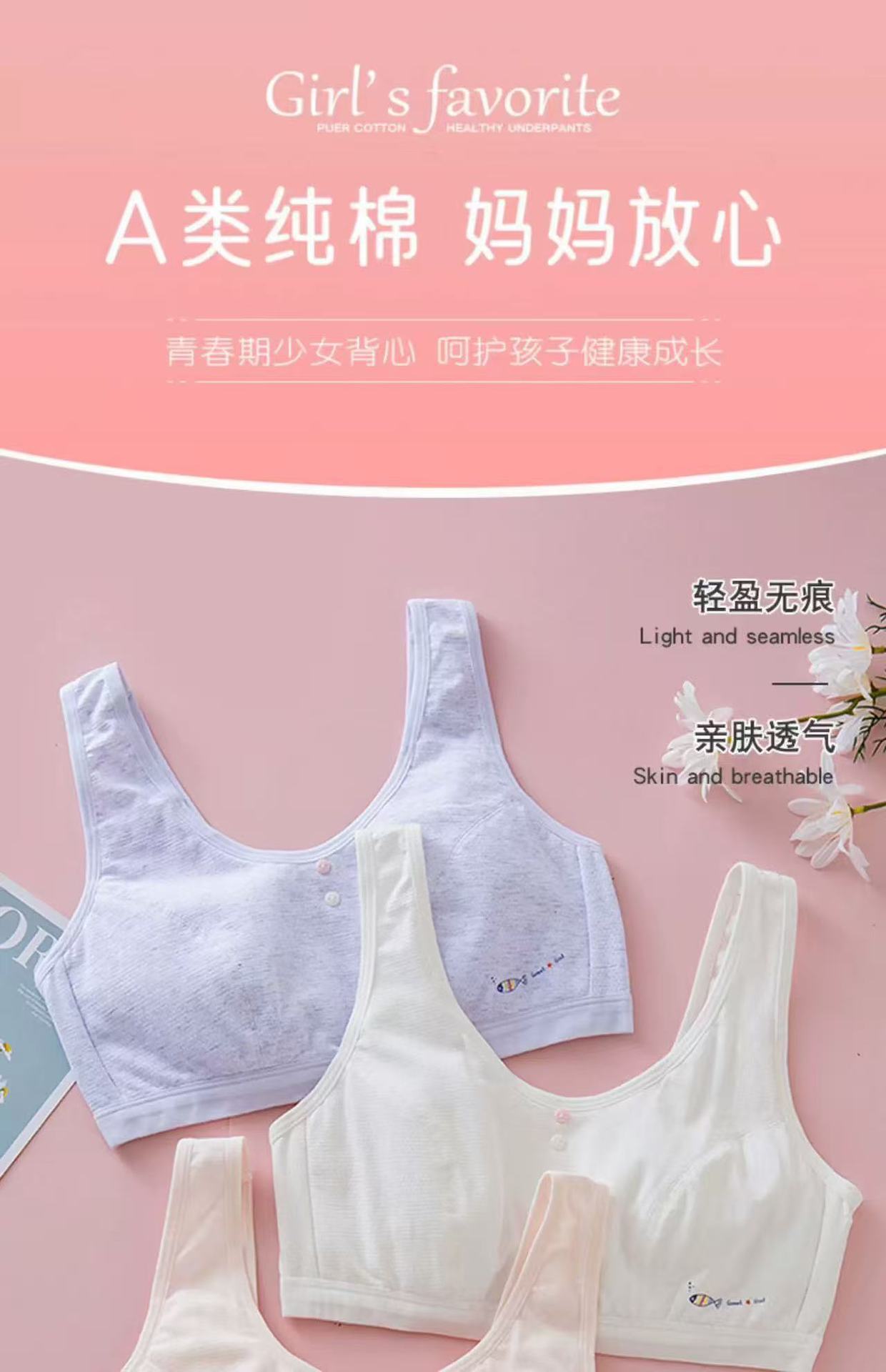 여아 속옷 발달기 조끼 여학생 큰 어린이 순면 어린이 중학생 13-15 세 여아 브래지어