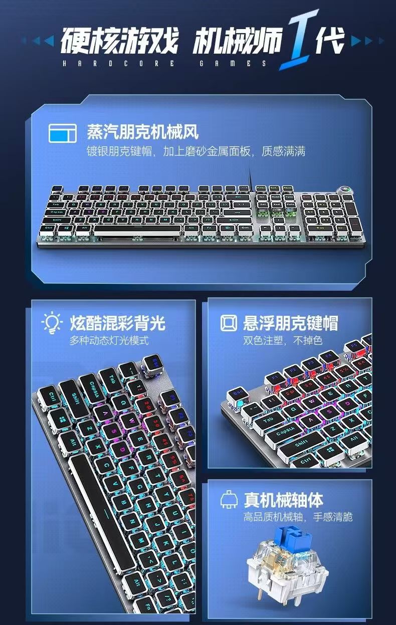 AULA/Wolf Spider F2088 펑크 기계식 키보드 녹색 축 검정색 축 Steampunk 복고풍 e-스포츠 게임 전용스토어 가기