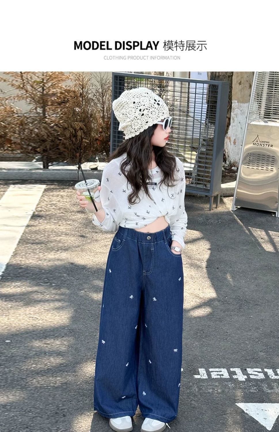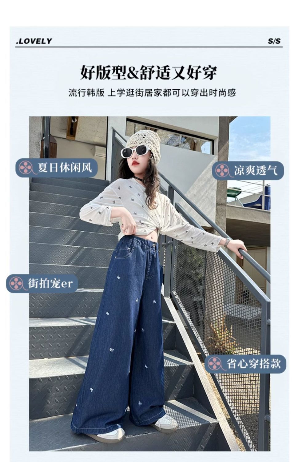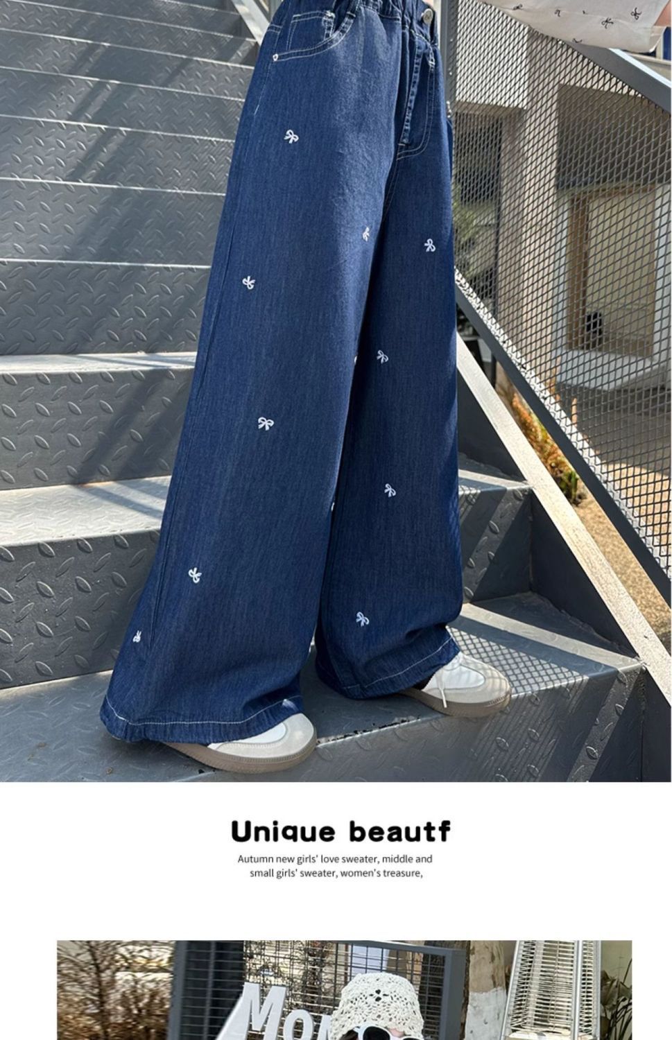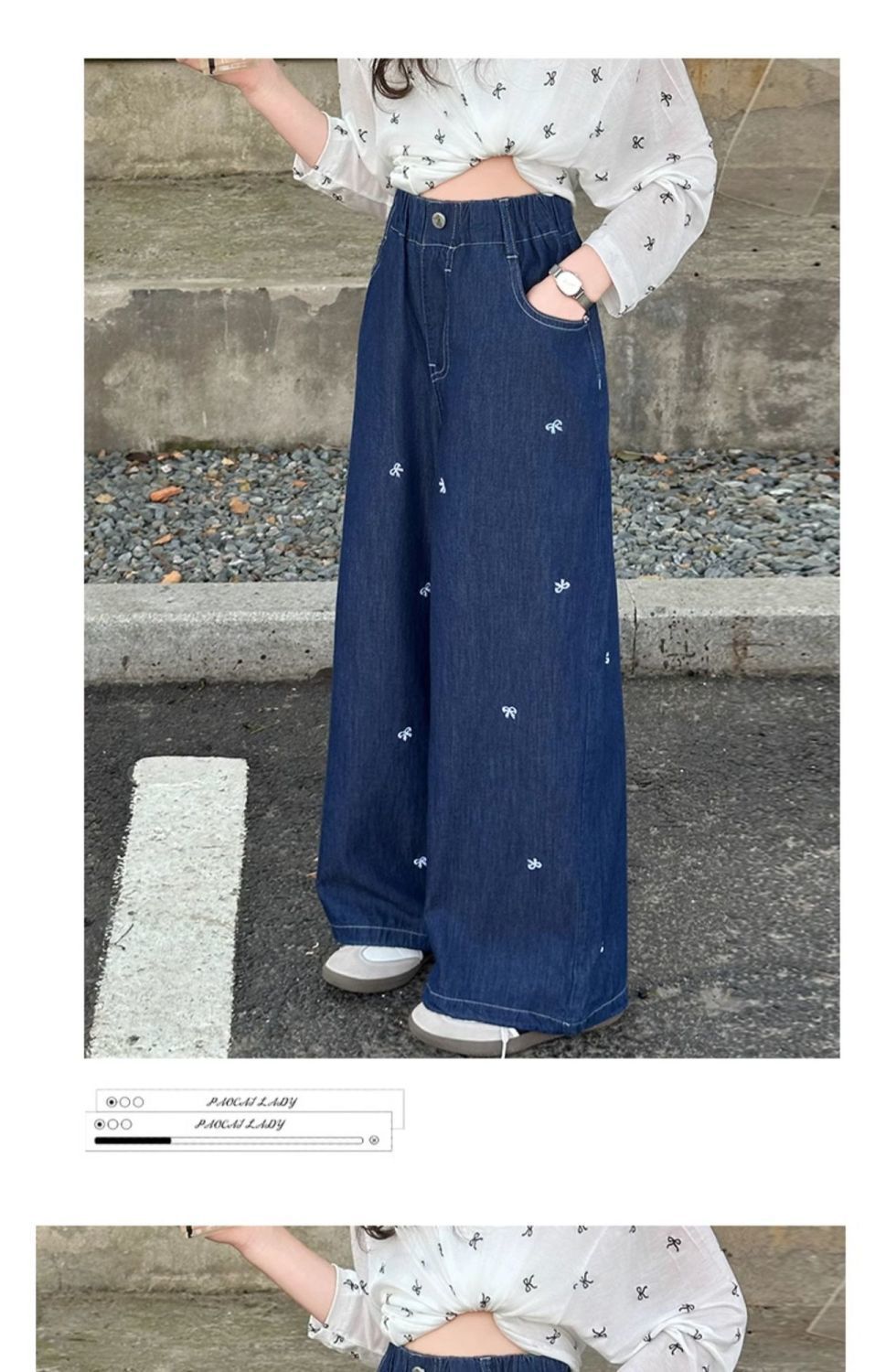 여아 청바지 여름 2025 새로운 한국 스타일 중대형 아동 스타일 보우 바지 루즈한 와이드 팬츠 트렌디스토어 가기
