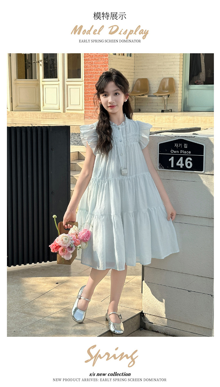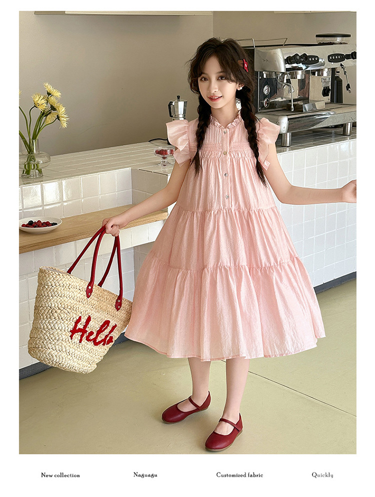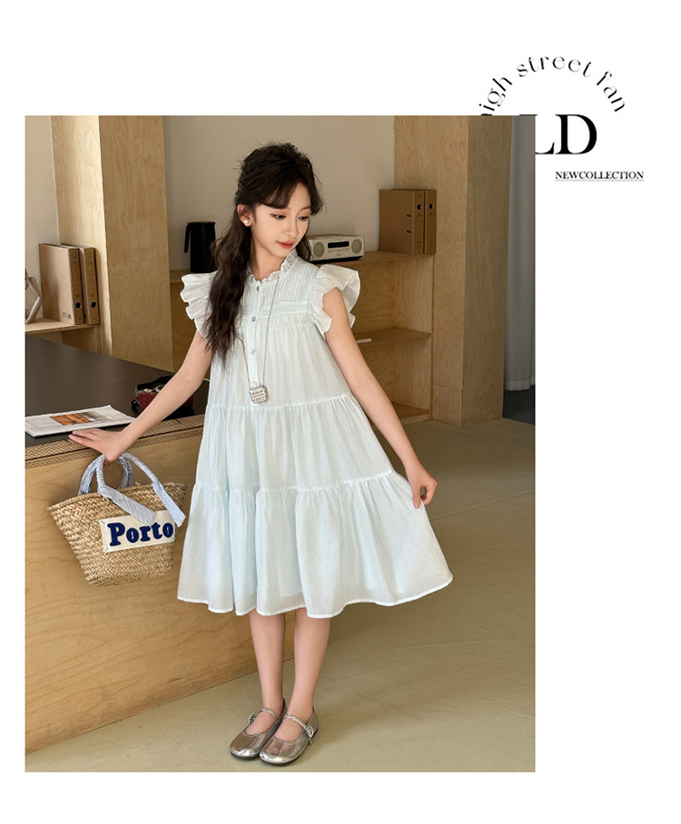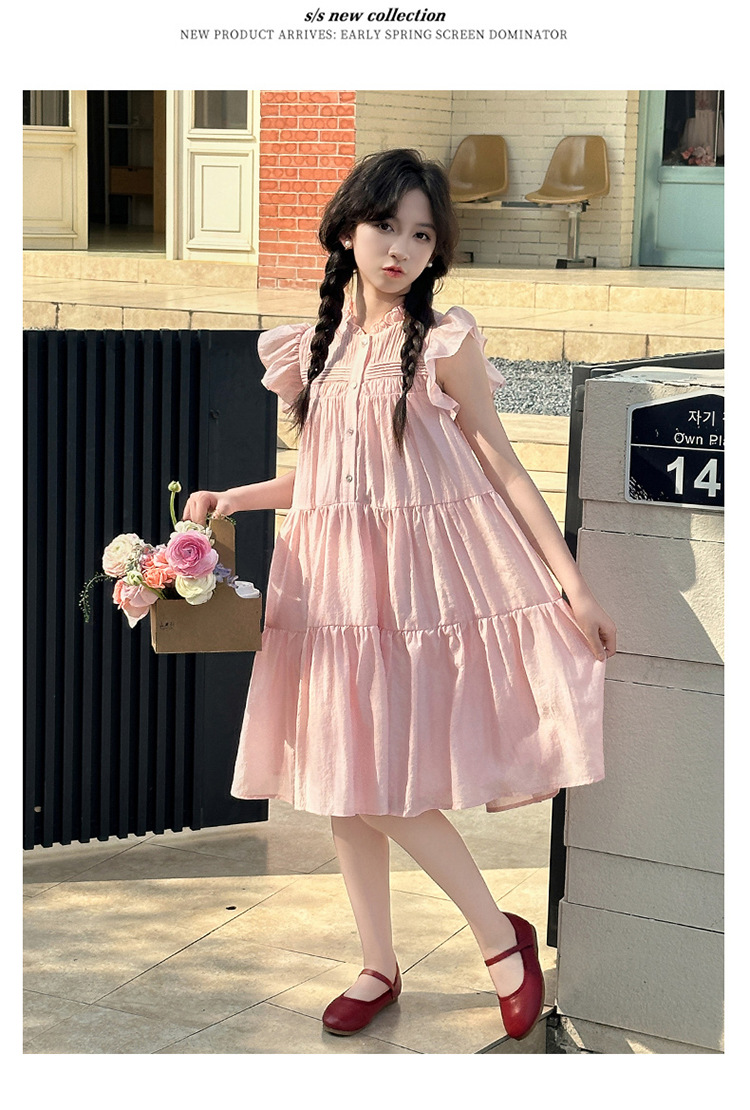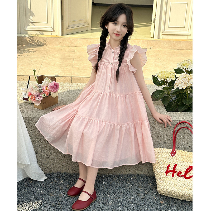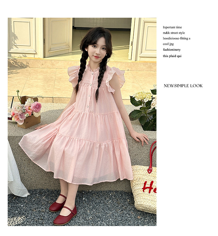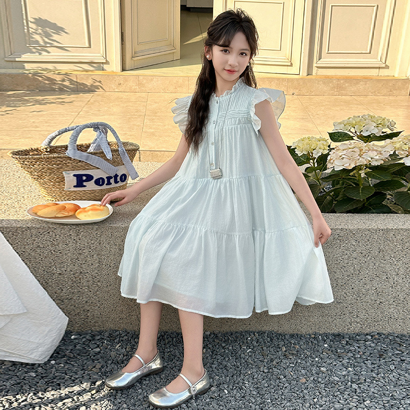 한국 스타일 소녀의 작은 비행 소매 원피스 여름 얇은 2025 새로운 도착 소녀의 세련된 민소매 공주 트렌디 스커트스토어 가기