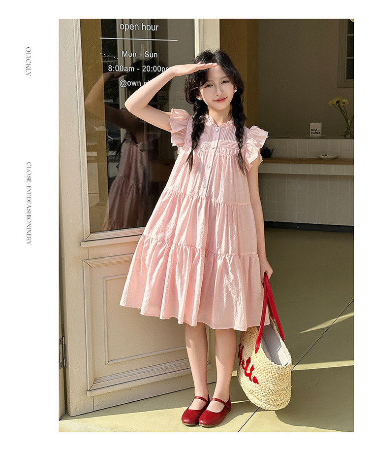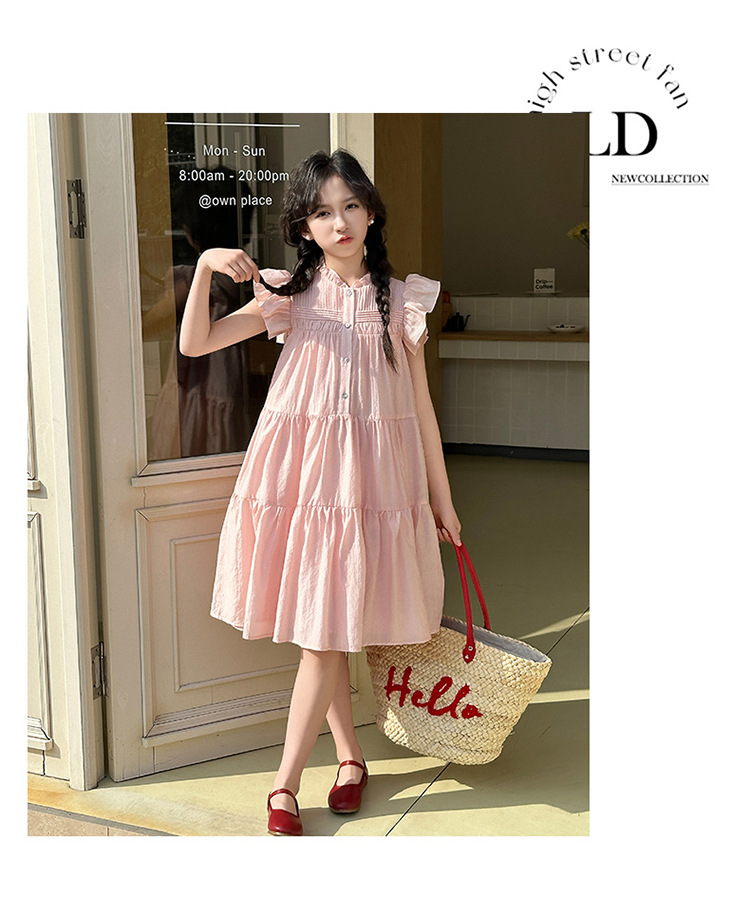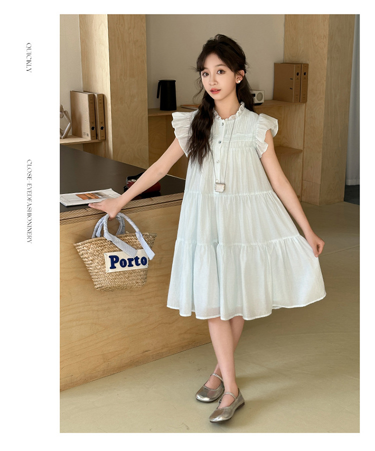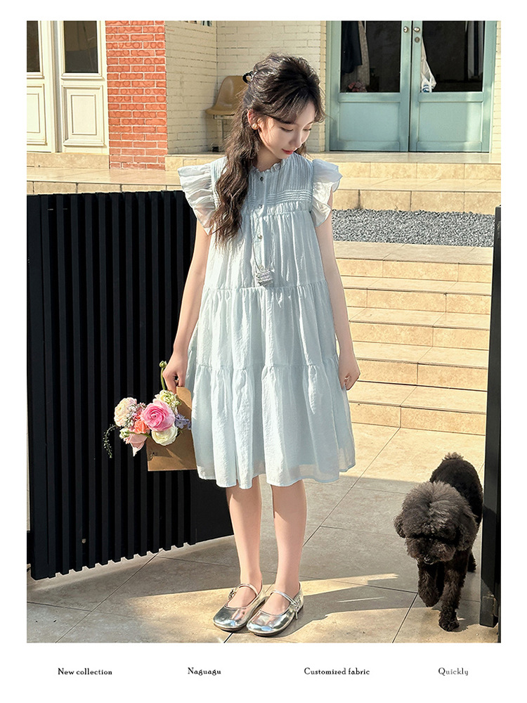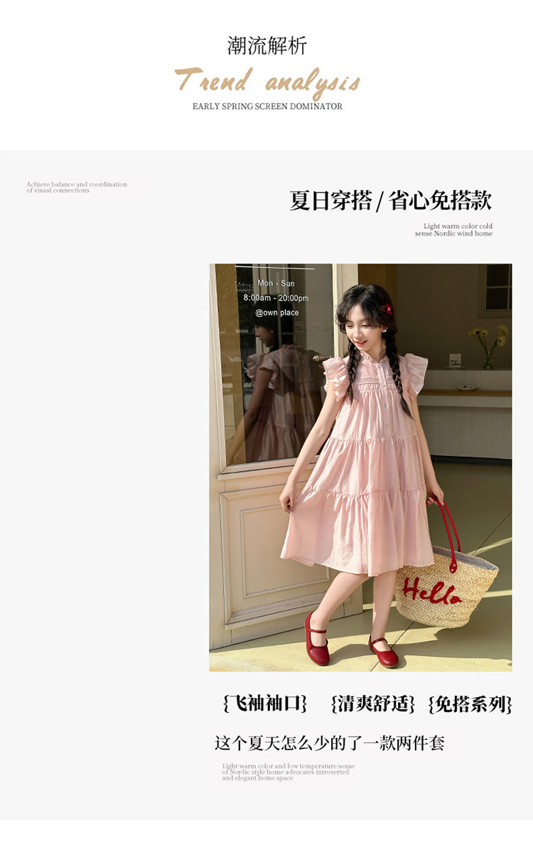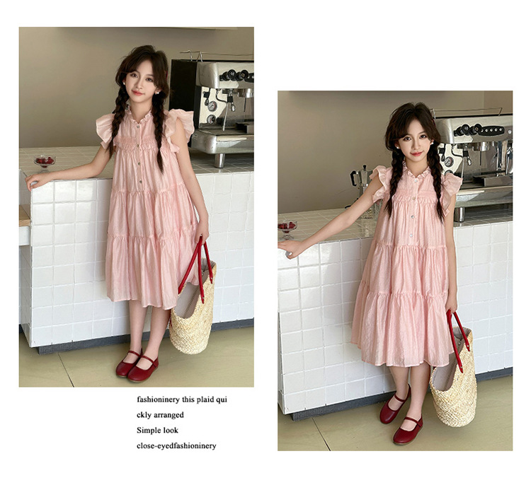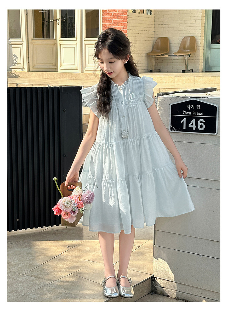 한국 스타일 소녀의 작은 비행 소매 원피스 여름 얇은 2025 새로운 도착 소녀의 세련된 민소매 공주 트렌디 스커트스토어 가기