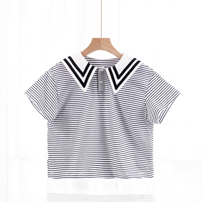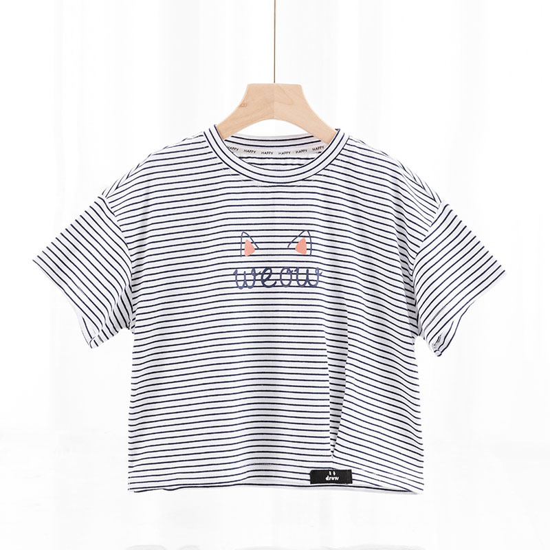 • 스트라이프 반소매--블랙