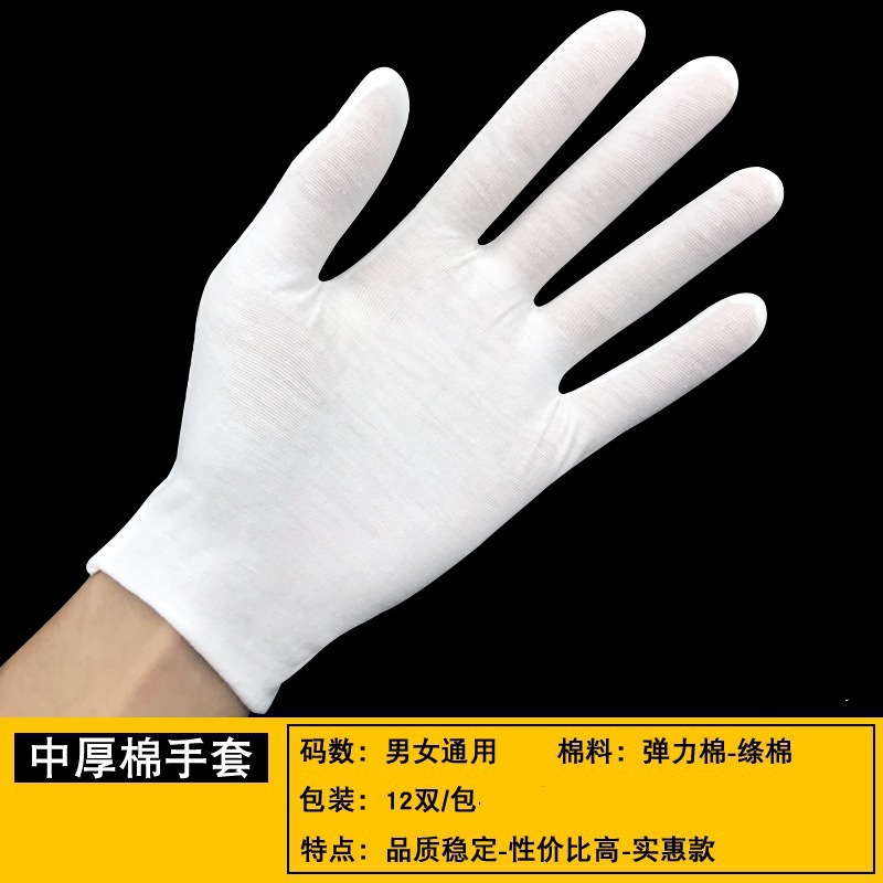 흰색 장갑, 면 예복, 얇은 문화용품, 구슬천, 남녀공용 작업복, 노동보호, 내마모성, 운전, 여름용 면직물