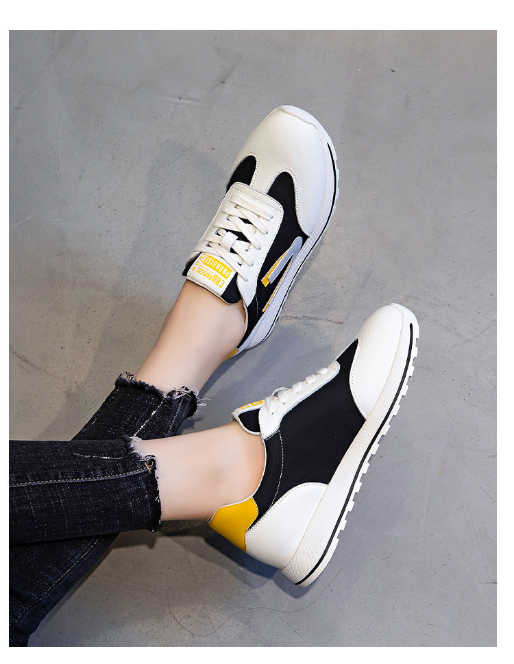 봄 2025 새로운 플랫 화이트 신발 여성 캐주얼 스포츠 달리기 통기성 여성 신발 라운드 토 정품 가죽 신발 여성 트렌디스토어 가기