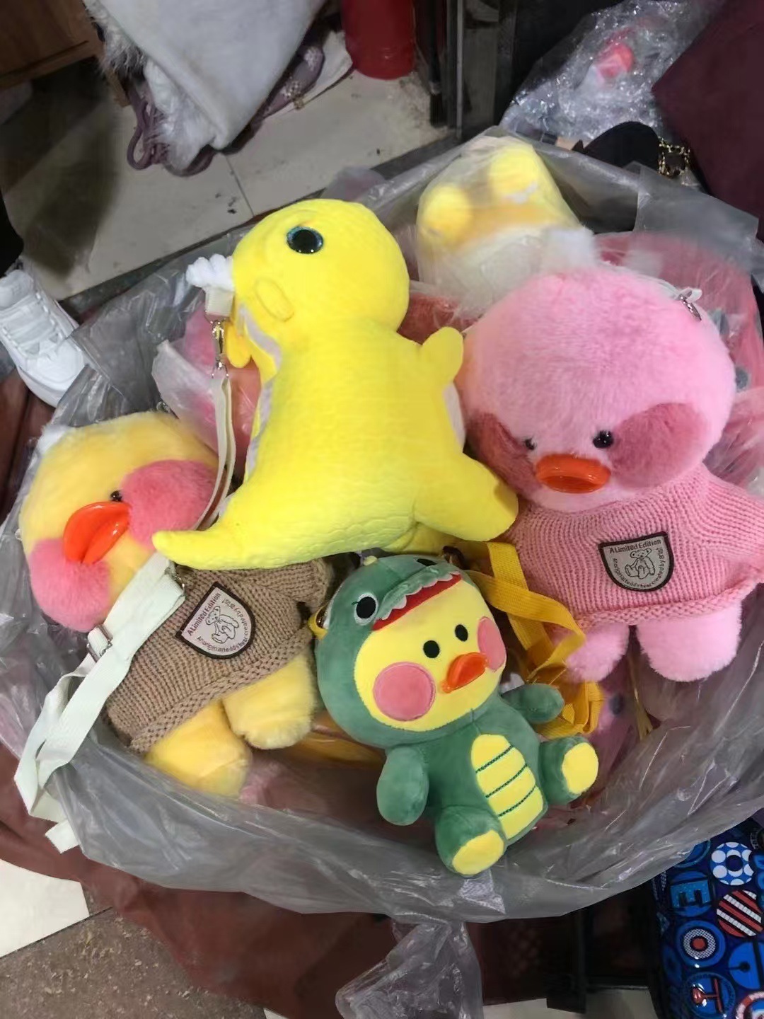 2025 얼굴 변화 오리 플러시 인형 작은 노란색 오리 인형 어린이 선물 장난감 인형 배낭스토어 가기