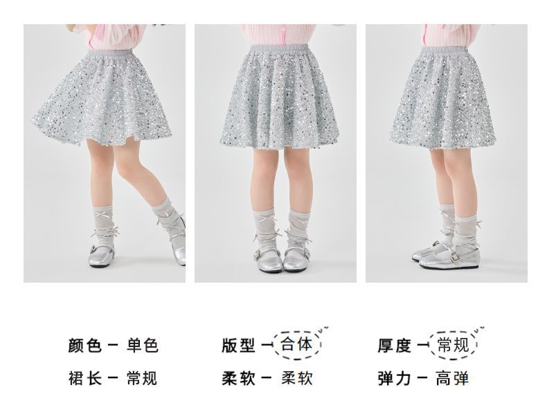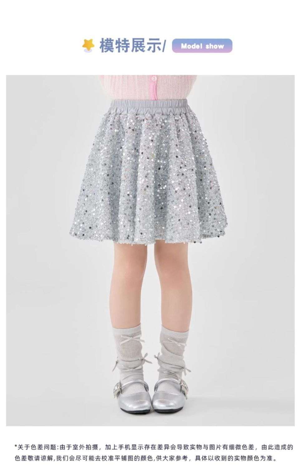 여자 스커트 여름 스팽글 공주 스커트 어린이 투투 스커트 2025 봄, 가을 어린 소녀 실버 스커트스토어 가기