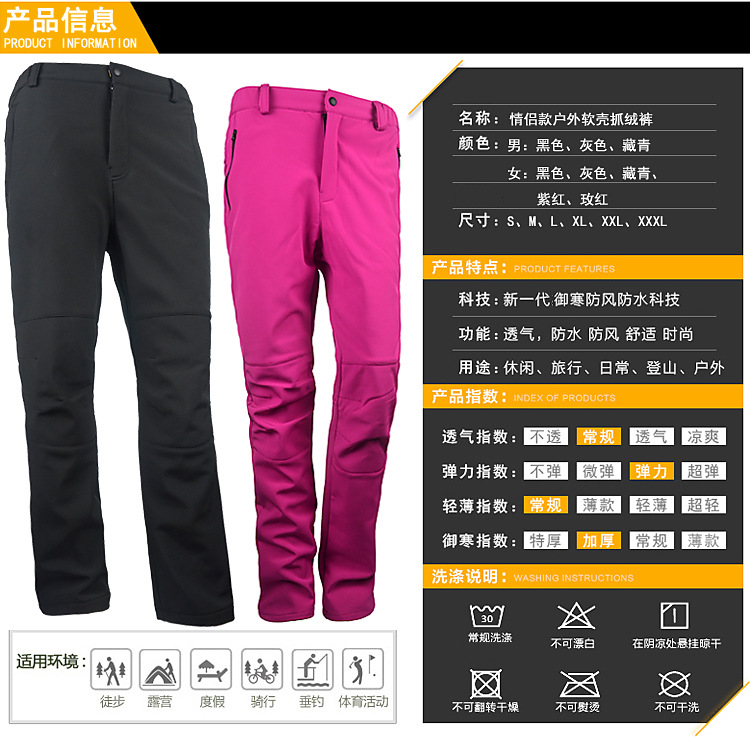 여성용 가을 겨울 야외 소프트 쉘 바지, 남성용 방풍 플러스 벨벳 따뜻한 플리스 바지, 스포츠 하이킹 바지 도매스토어 가기