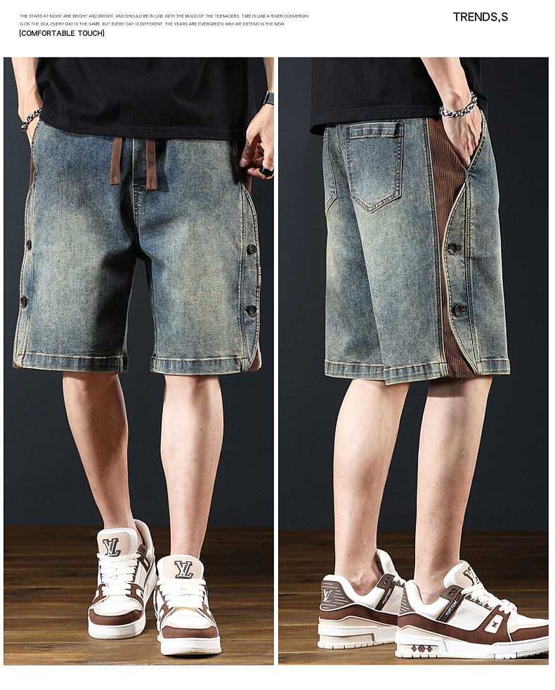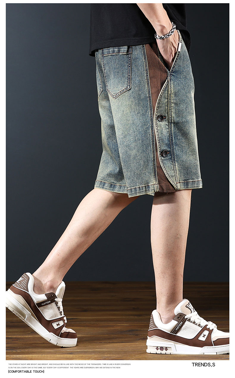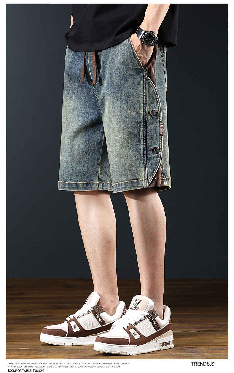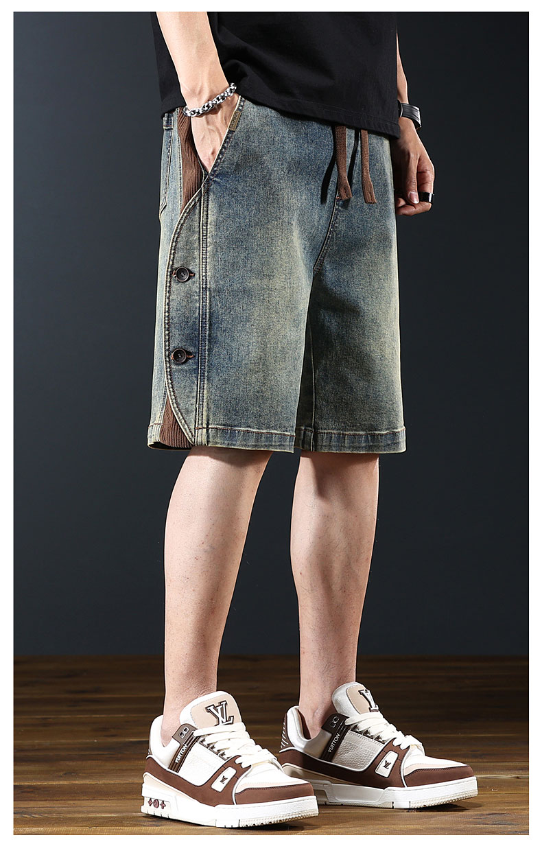 아메리칸 레트로 워크웨어 데님 반바지 남성 여름 신작 루즈 와이드 레그 헤비 캐주얼 스플라이스 5부 팬츠