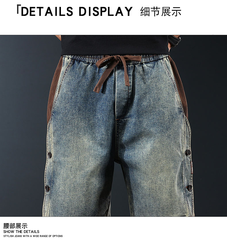 아메리칸 레트로 워크웨어 데님 반바지 남성 여름 신작 루즈 와이드 레그 헤비 캐주얼 스플라이스 5부 팬츠스토어 가기