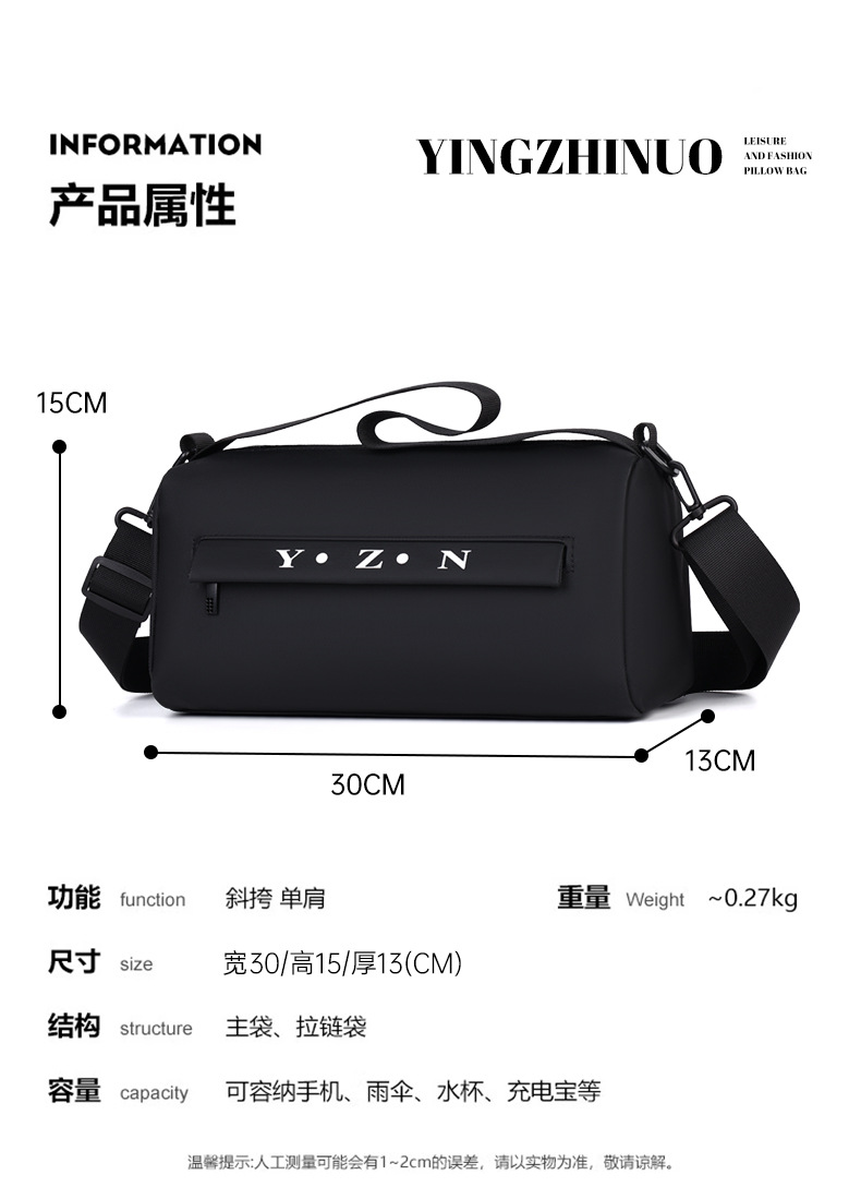 다기능 캐주얼 다용도 휴대용 원통형 가방 2025 새로운 간단한 어깨 가방 통근 여행 스포츠 크로스 바디 백