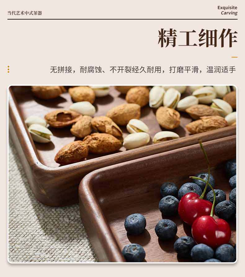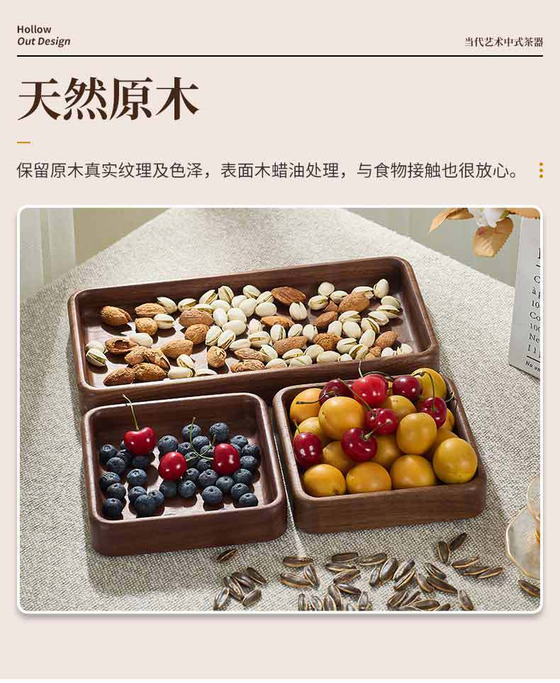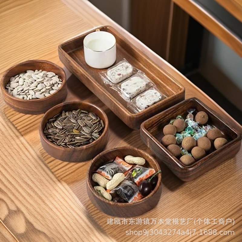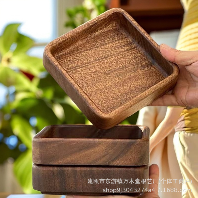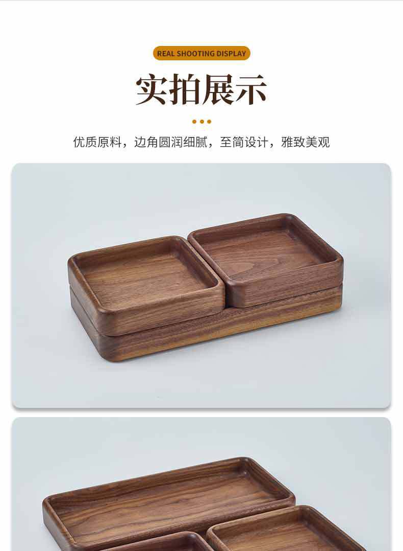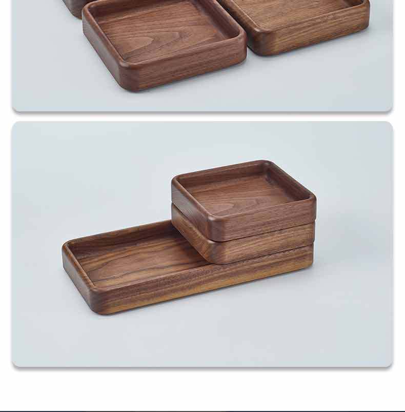 호두 사각형 트레이 나무 말린 과일 스낵 보관함 쌓을 수있는 단단한 나무 디너 트레이 라이트 럭셔리 복고풍 나무 트레이