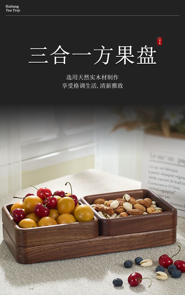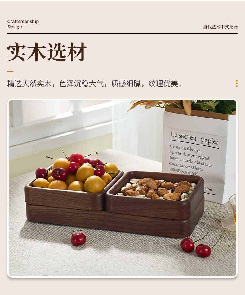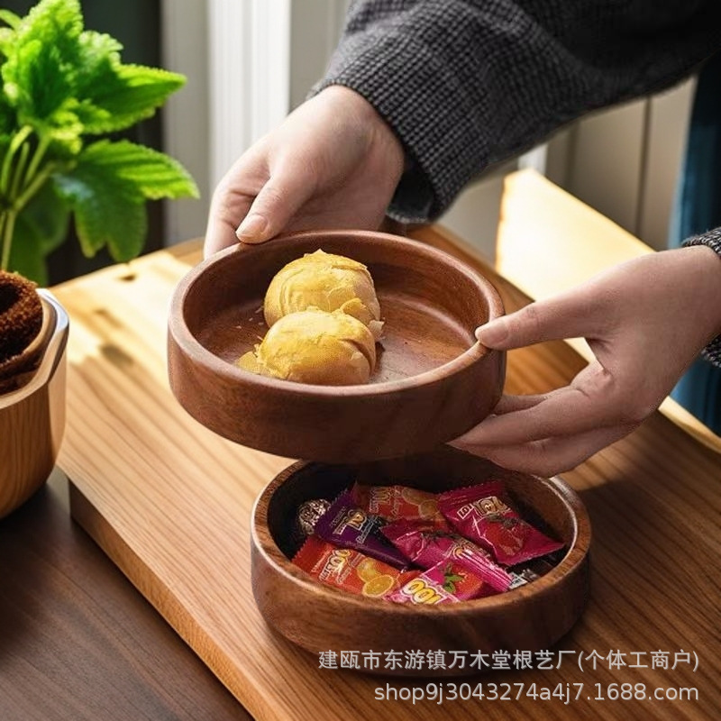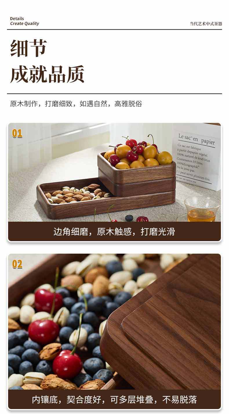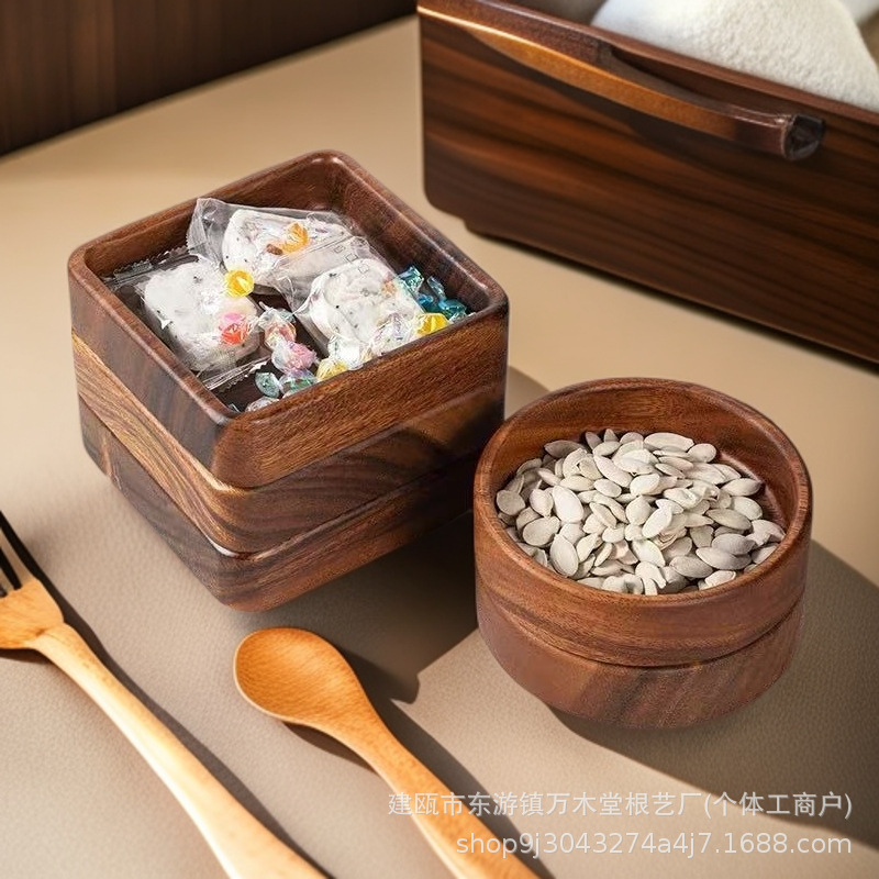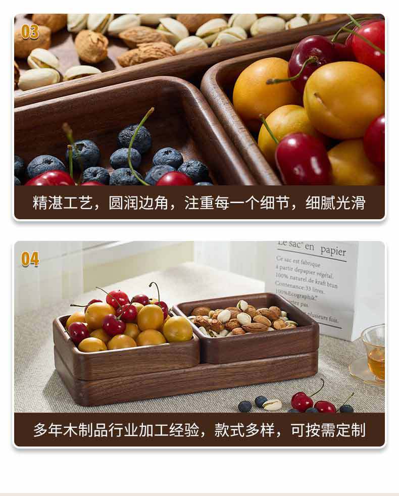 호두 사각형 트레이 나무 말린 과일 스낵 보관함 쌓을 수있는 단단한 나무 디너 트레이 라이트 럭셔리 복고풍 나무 트레이