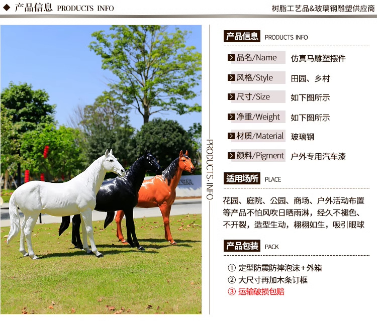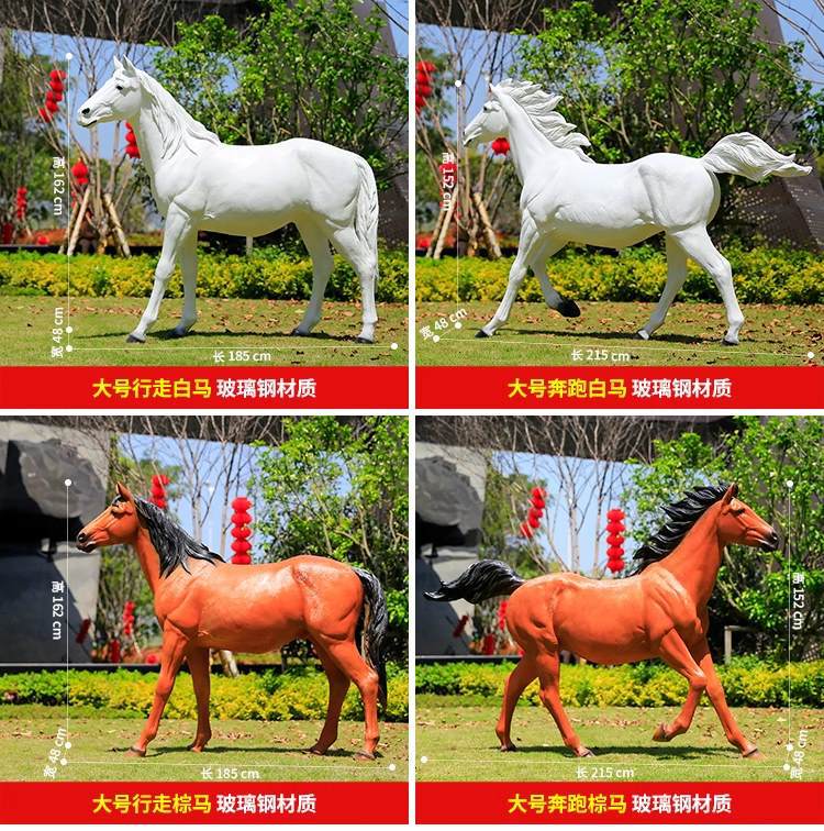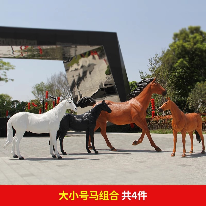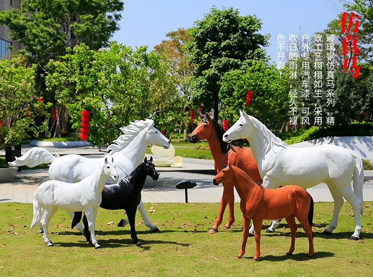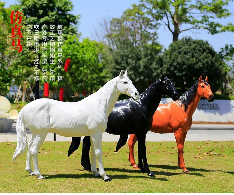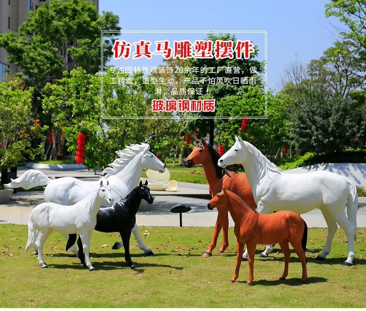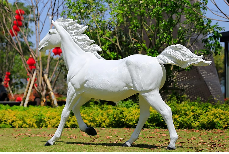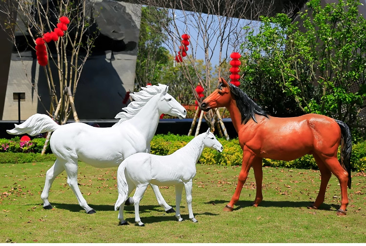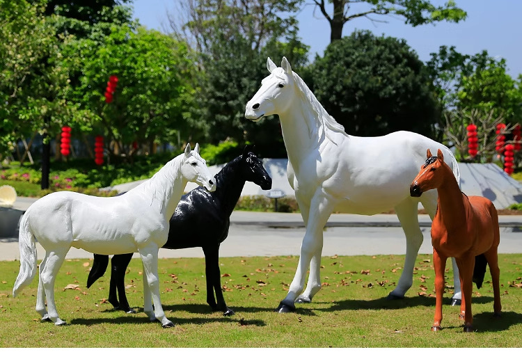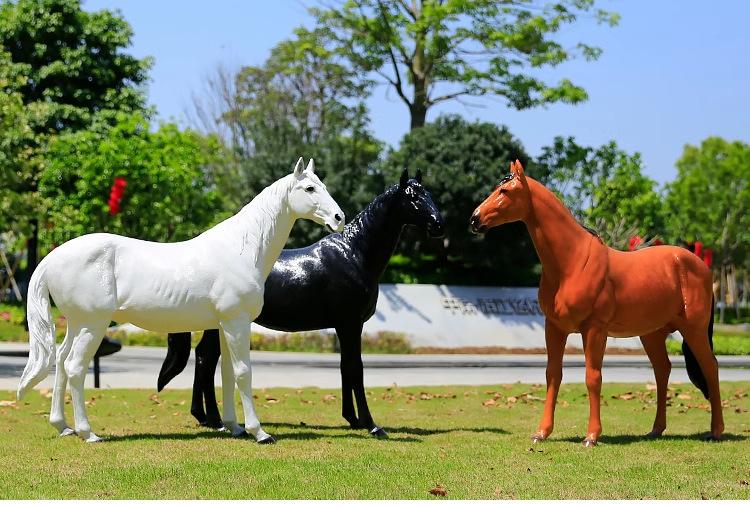 야외 시뮬레이션 동물 유리 섬유 강화 플라스틱 흑백 말 조각 안뜰 정원 풍경 쇼핑몰 바닥 잔디 큰 장식품스토어 가기