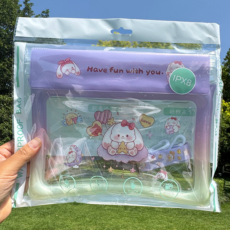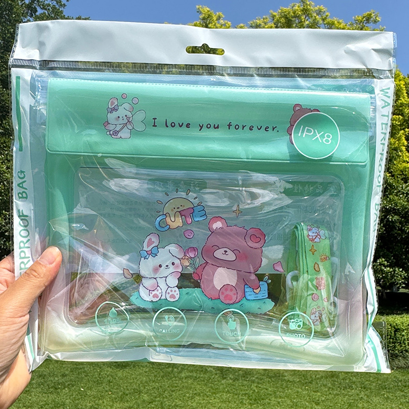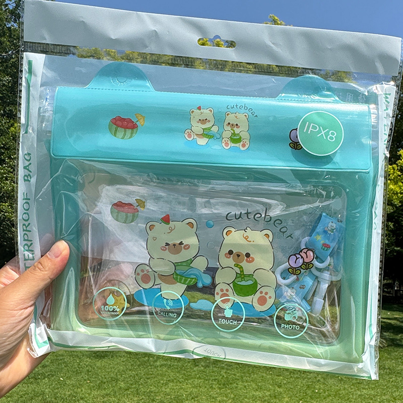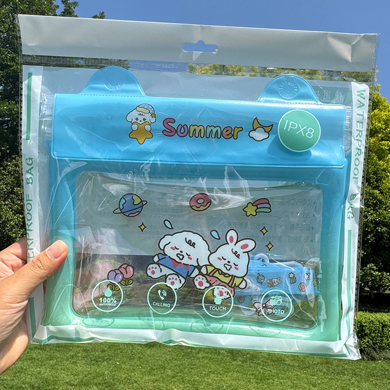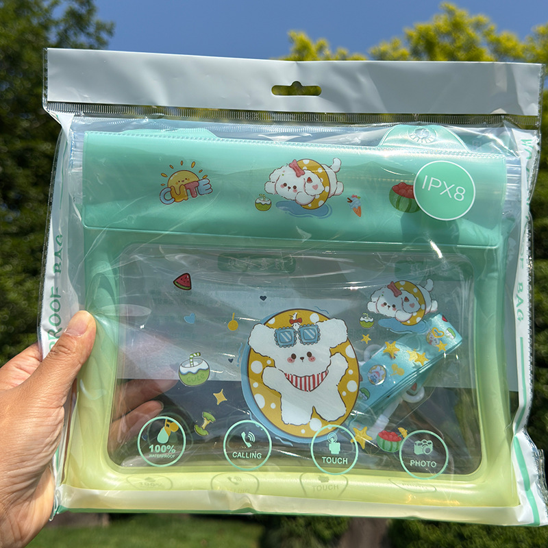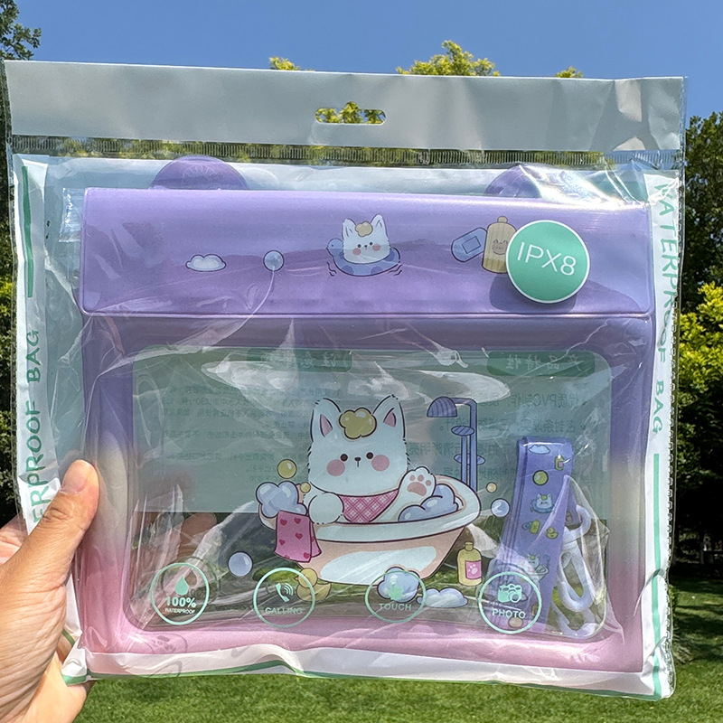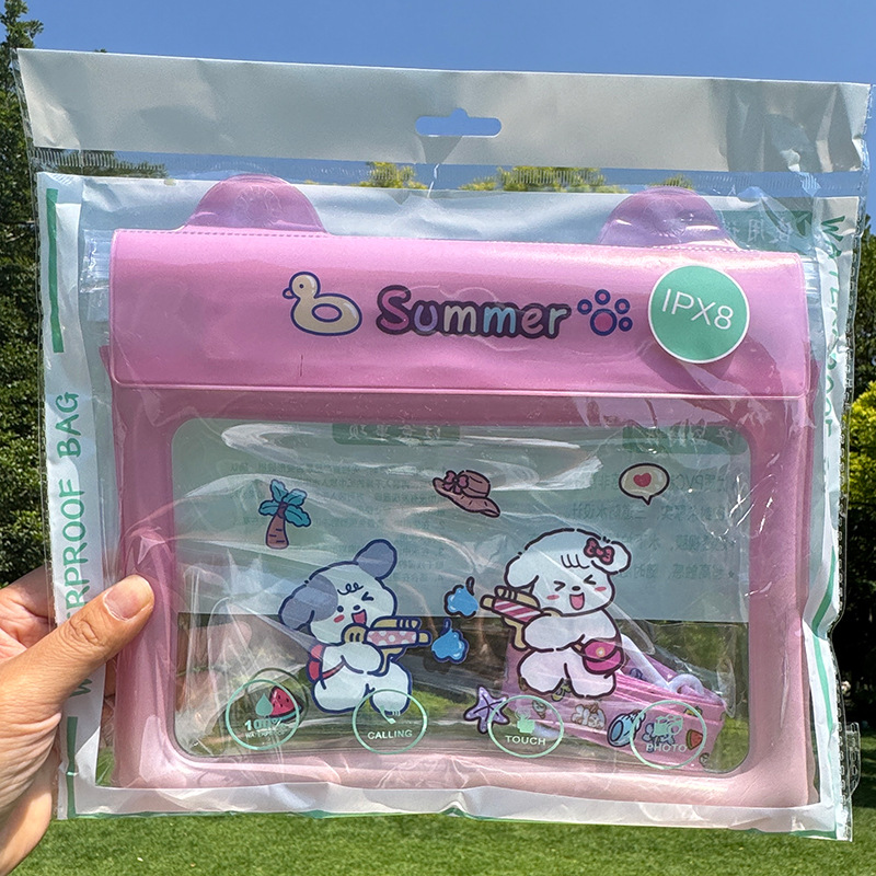 크로스 바디 방수 풍선 허리 가방 수영 야외 4 층 밀봉 만화 휴대 전화 방수 가방 터치 스크린