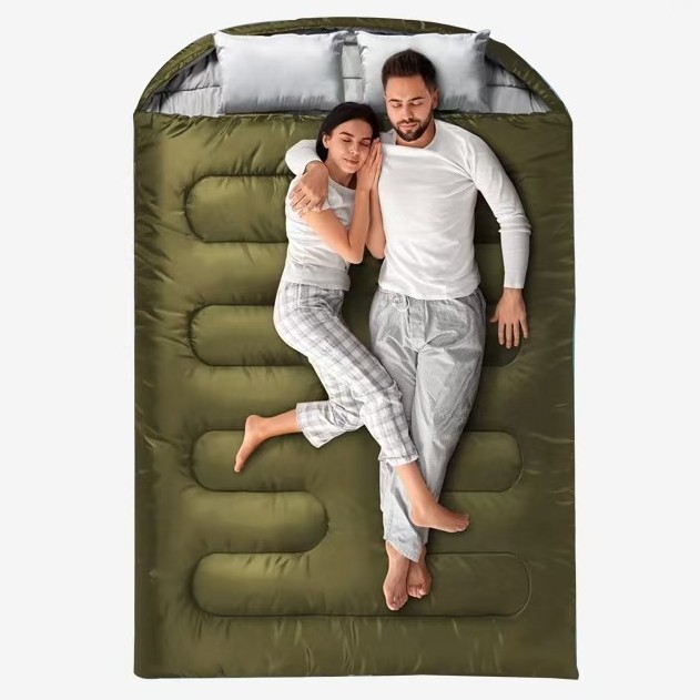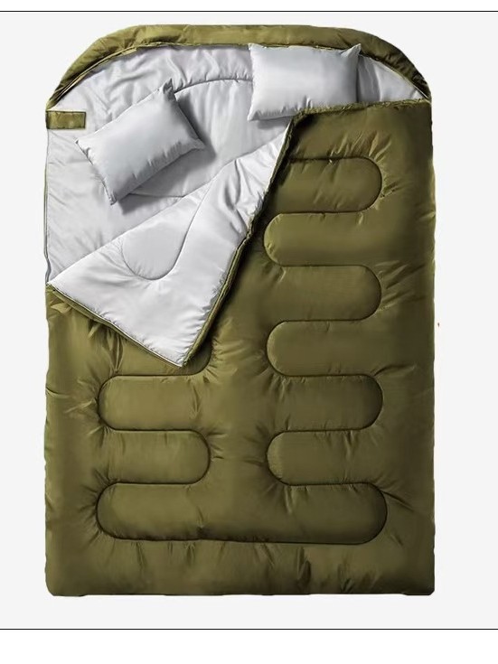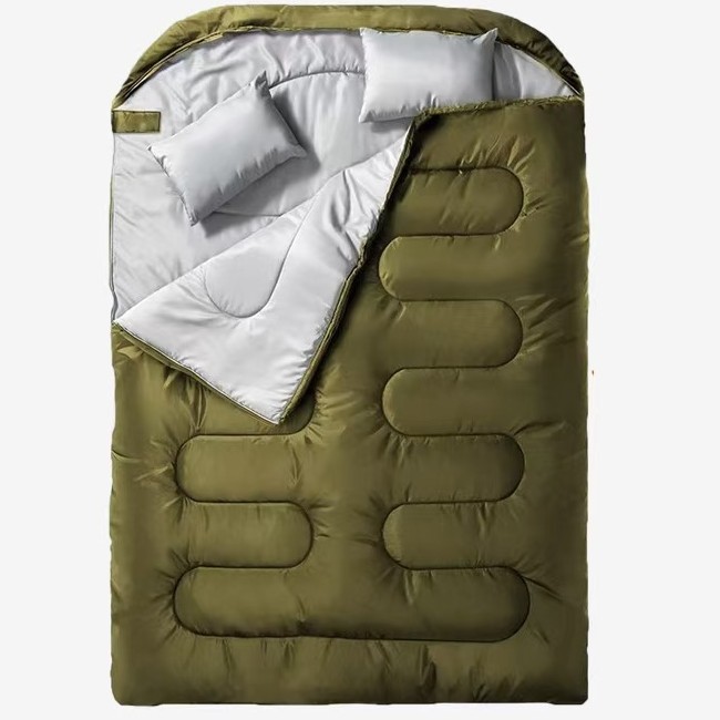 두 개의 봉투와 모자가 달린 성인용 침낭, 휴대용 이중 목적 방수 야외 여행 분리형 침낭, 사계절 캠핑 침낭