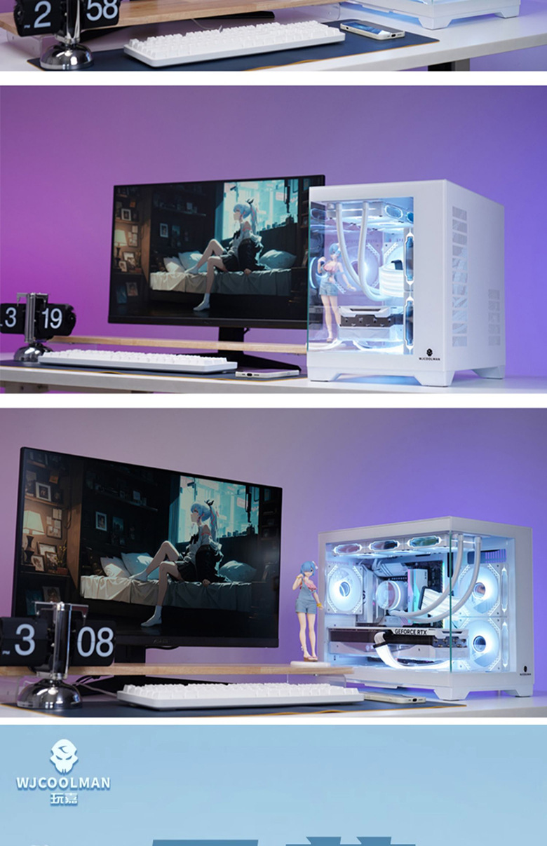 Wanjia Guyongzhe 바다 전망 룸 컴퓨터 케이스 데스크탑 MATX 측면 투명 360 수냉 바다 전망 룸 게임스토어 가기