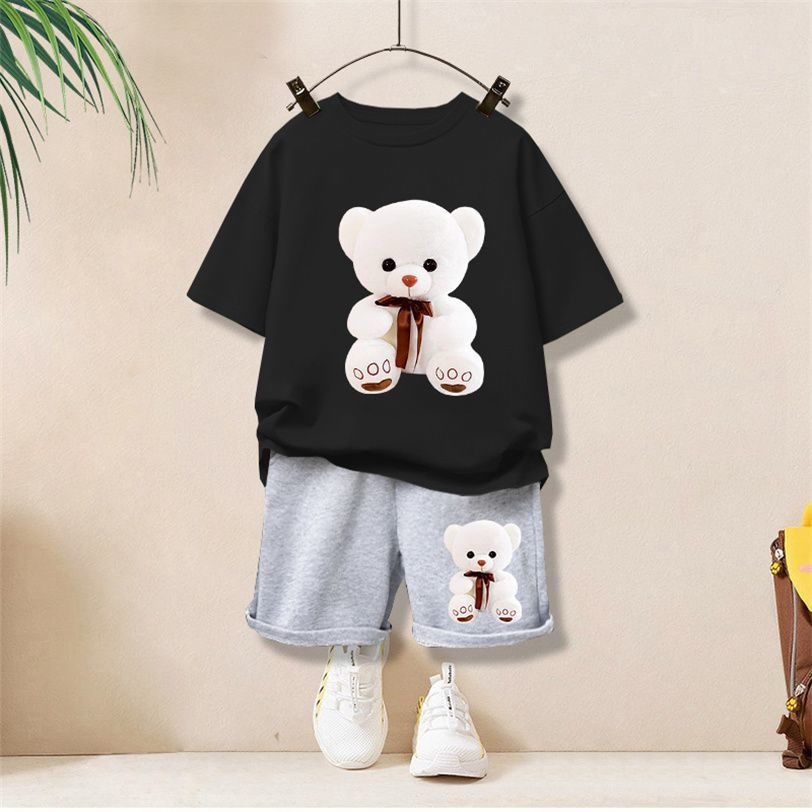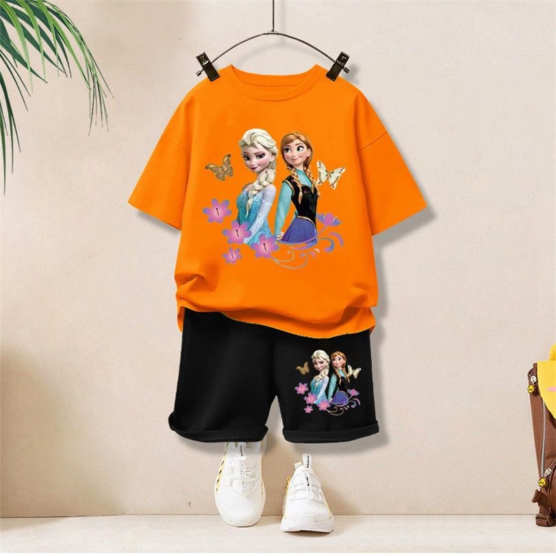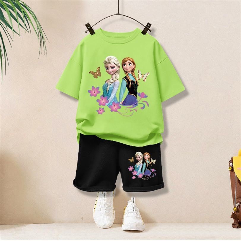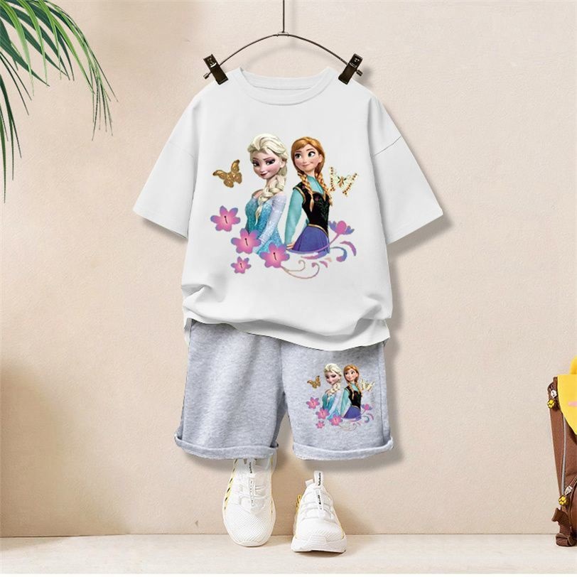 여자 스포츠 정장 2023 새로운 스타일 어린이 유행 반팔 티셔츠 만화 아동 의류 여름 어린이스토어 가기