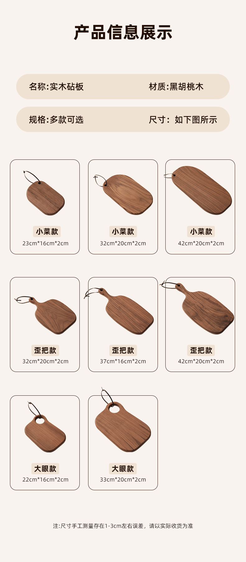 북미 검은 호두나무 통나무 도마 일본식 가정용 작은 도마 스테이크 과일 빵 트레이 인스토어 가기
