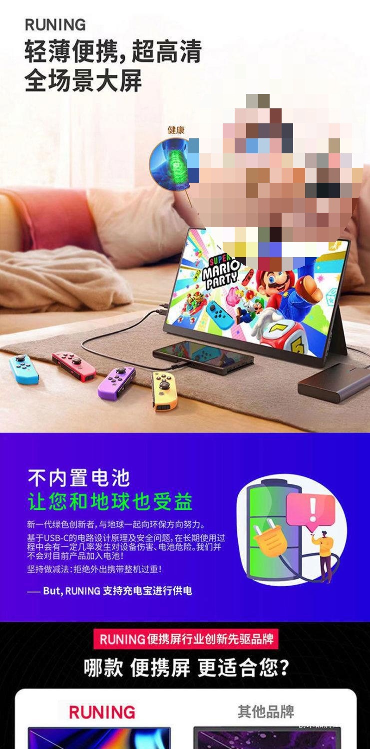 4K 휴대용 디스플레이 스위치/ps4/5 확장 화면 노트북 외부 144 서브 스크린 휴대 전화 라이브 동일한 화면스토어 가기