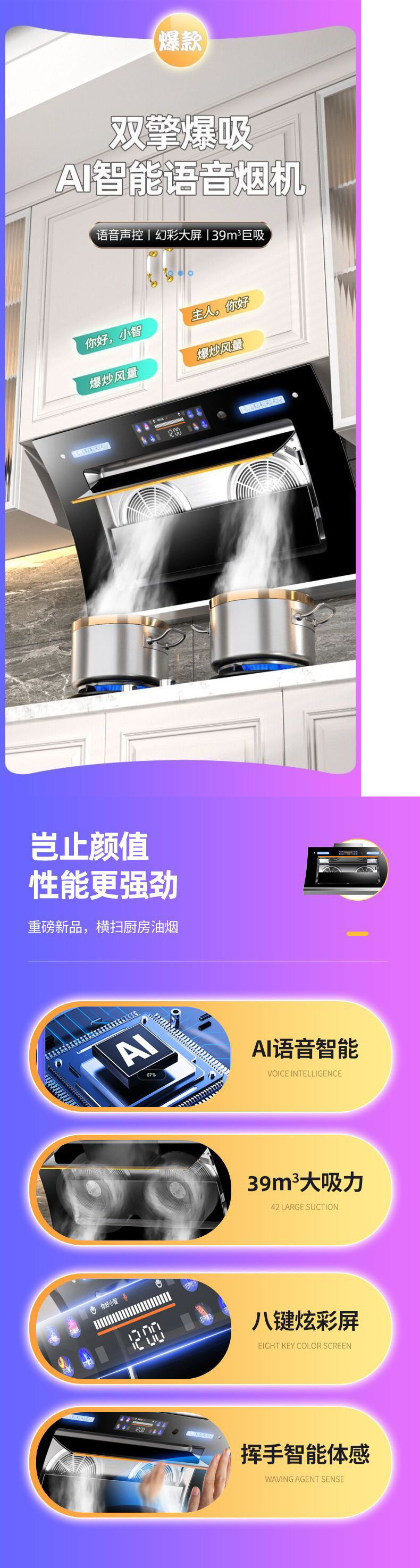 신페이 레인지 후드 가정용 사이드 흡입 임대 하우스 대형 흡입 범위 후드 가정용 벽 후드 주방