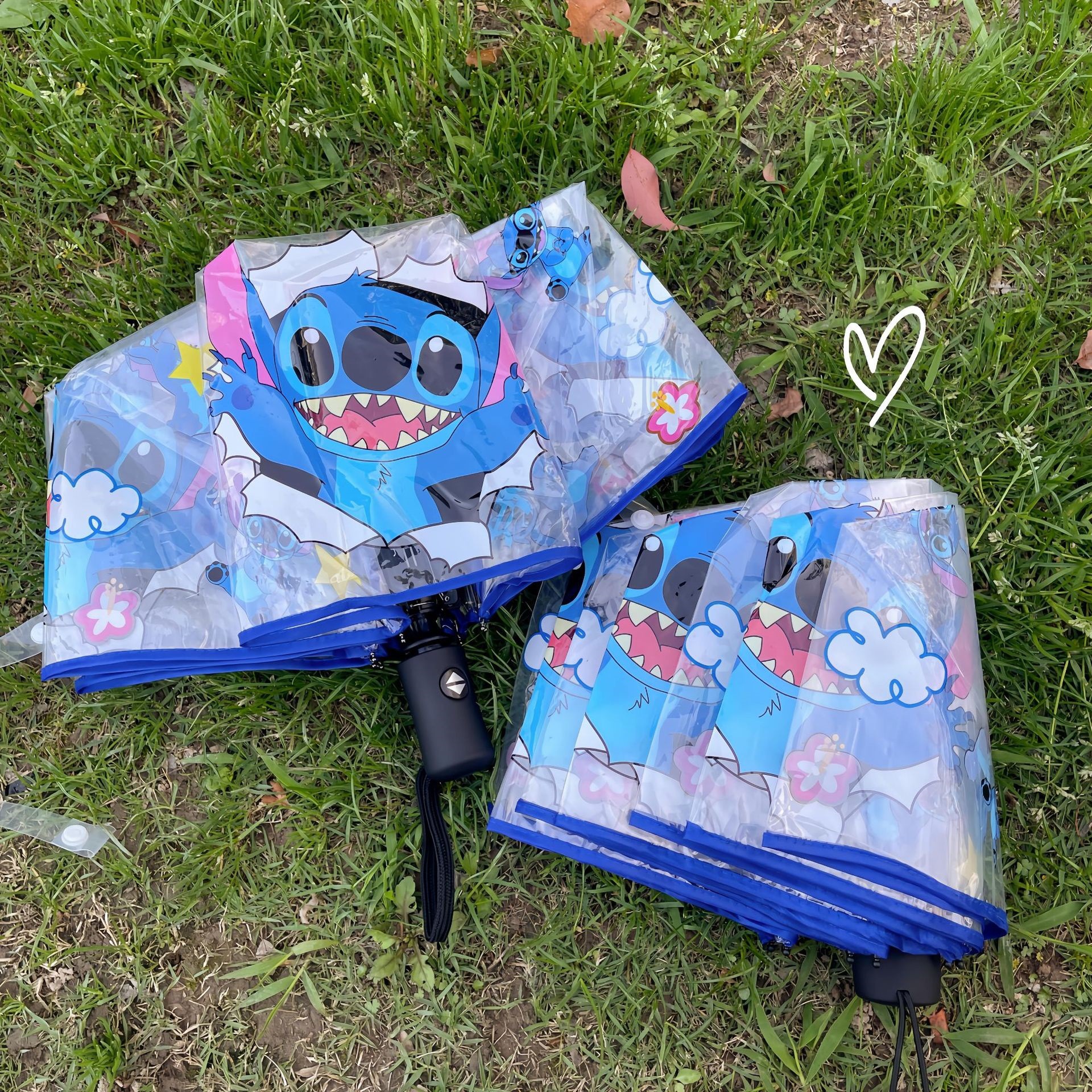 만화 애니메이션 스티치 완전 자동 투명 우산 인터넷 연예인 접이식 70% off 우산 태양 그늘 비닐 학생 남성과 여성 우산