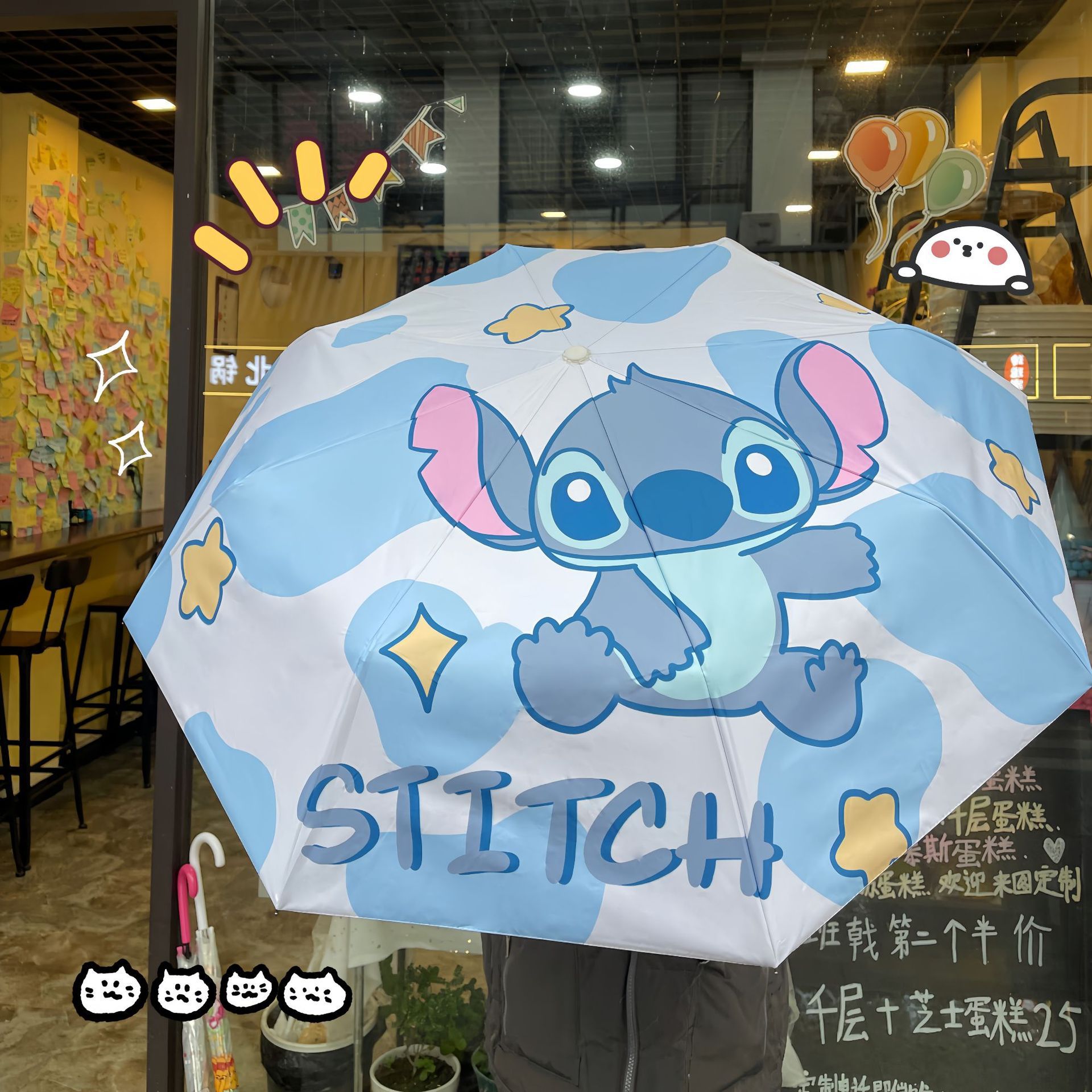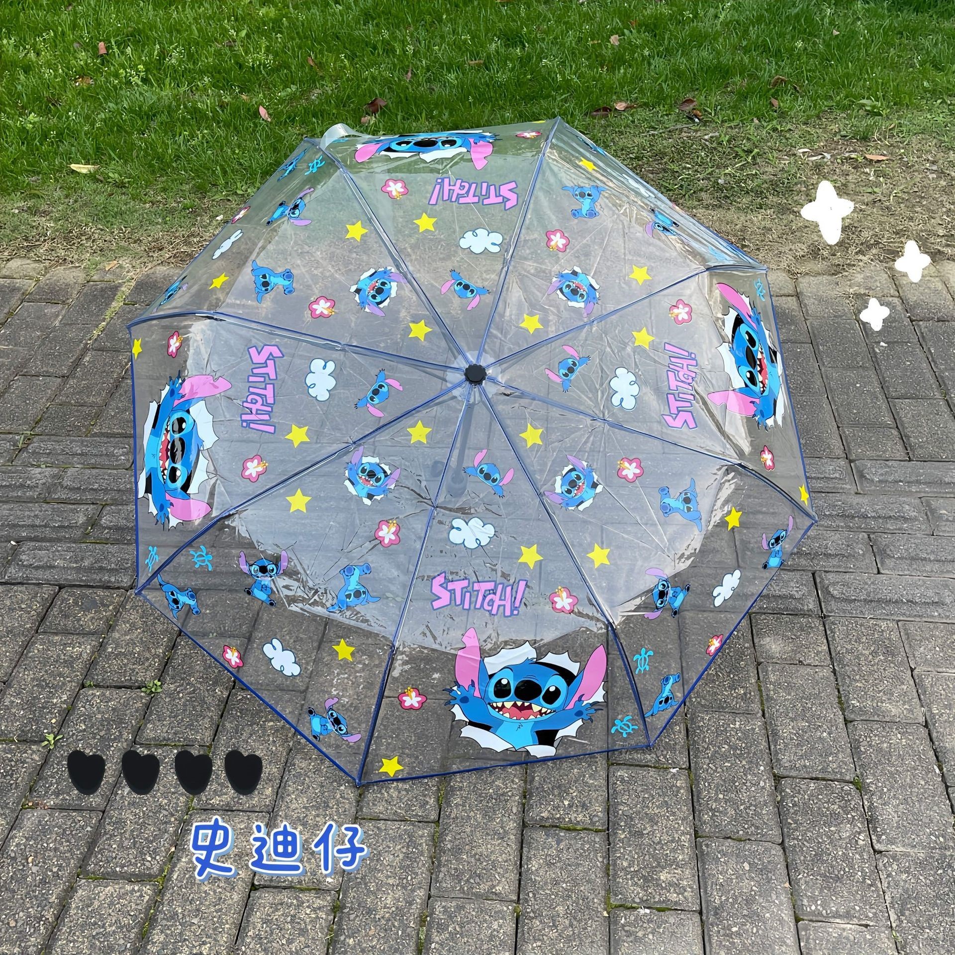 만화 애니메이션 스티치 완전 자동 투명 우산 인터넷 연예인 접이식 70% off 우산 태양 그늘 비닐 학생 남성과 여성 우산스토어 가기