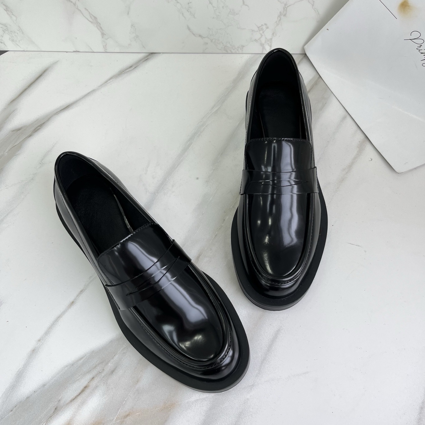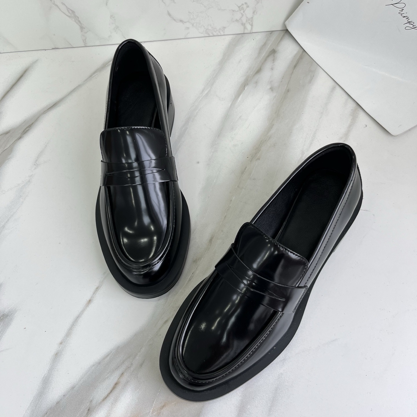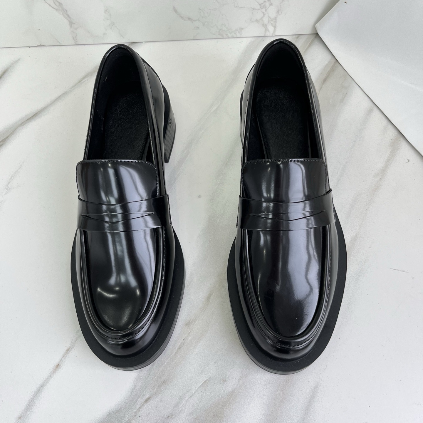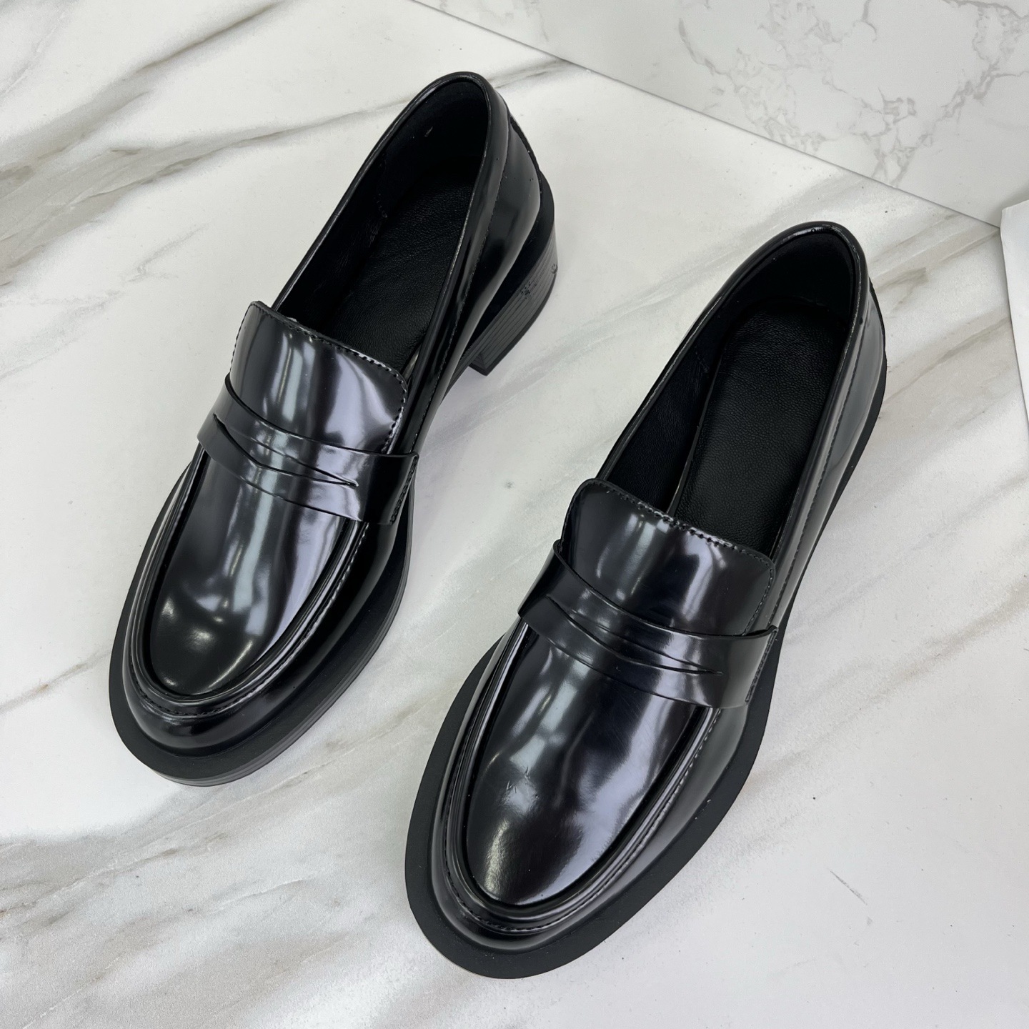 S*W 노라벨 스퀘어토 소퍼니쉬드 가죽슈즈 옥스퍼드 슈즈 여성용 두꺼운 밑창 슬립온 로퍼 패션슈즈