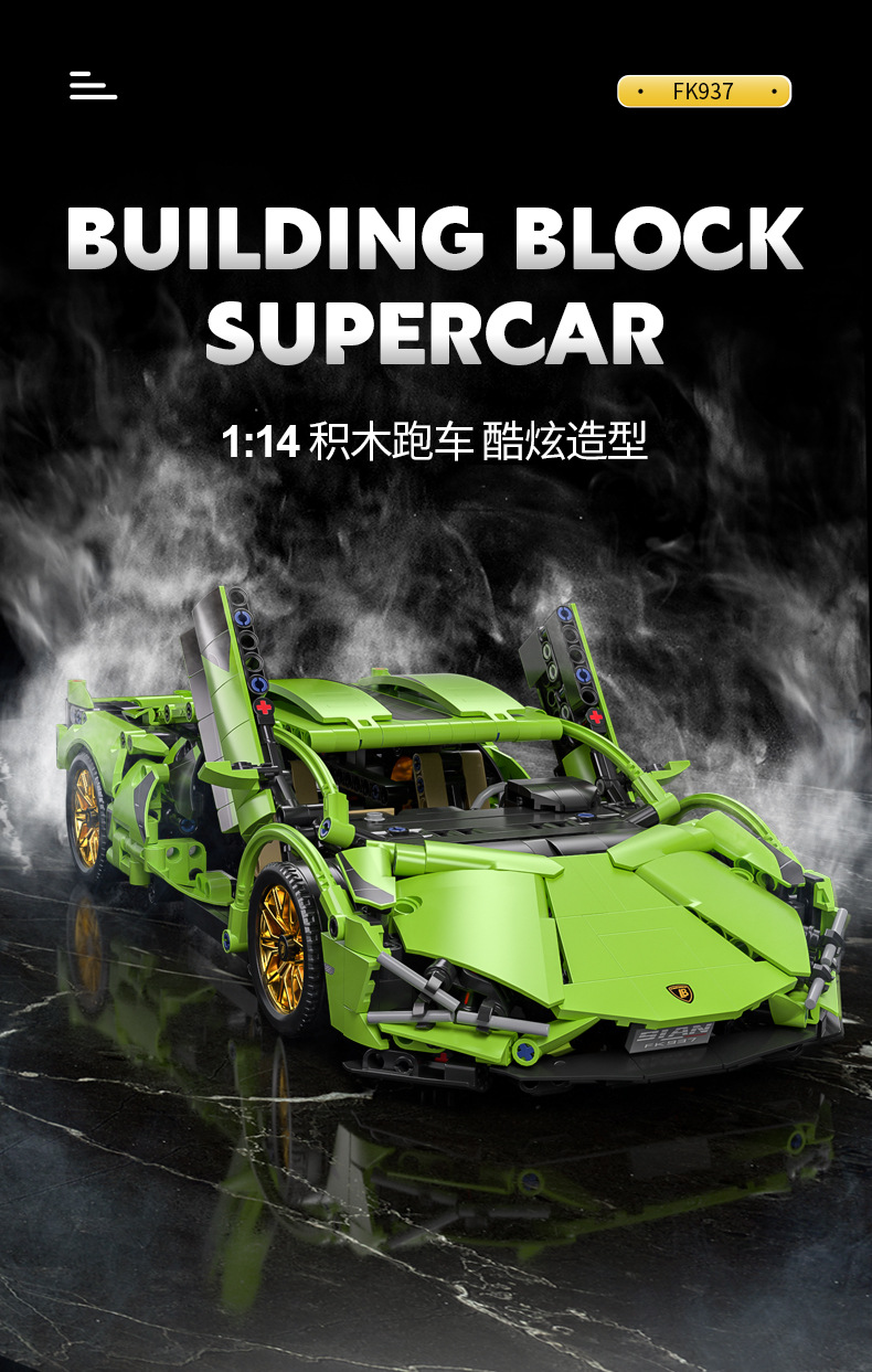 레고 처리 맞춤형 원격 제어 그린 라이온 램보 FKP 작은 입자 빌딩 블록 자동차 조립 어린이 장난감 모델과 호환 가능스토어 가기