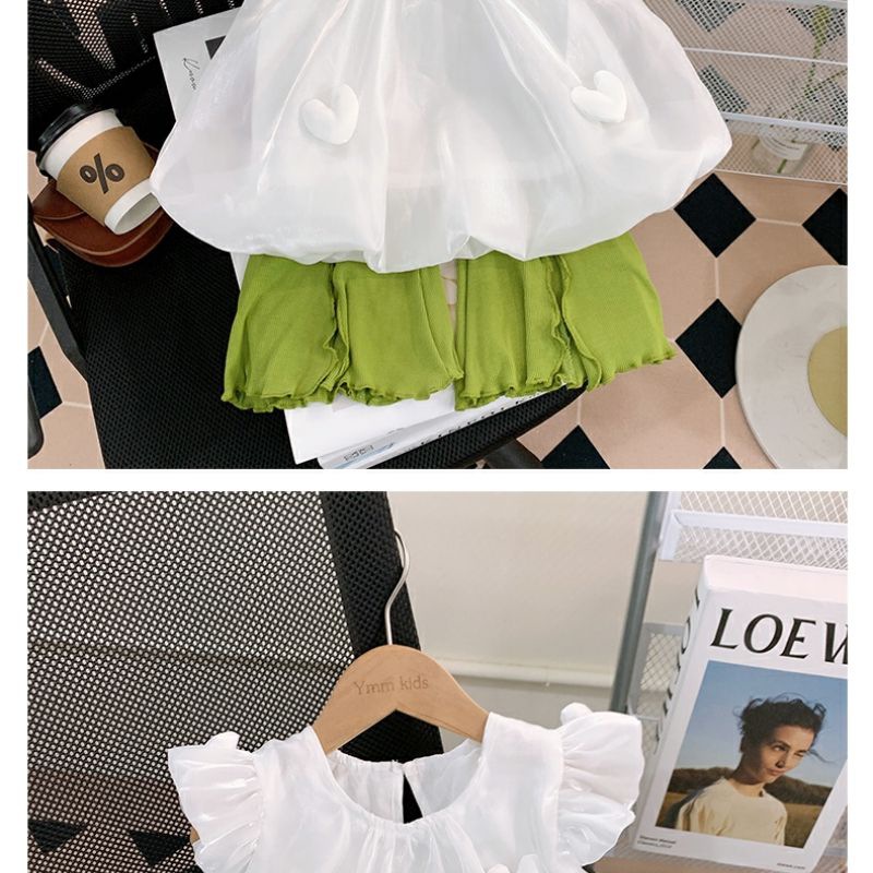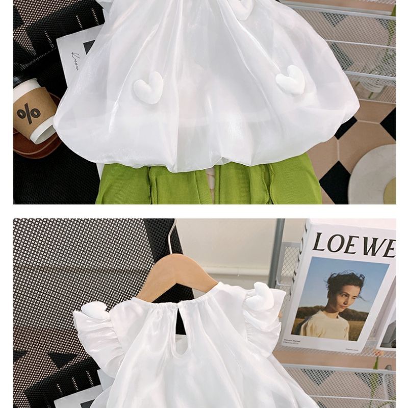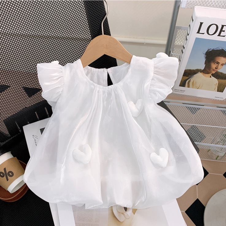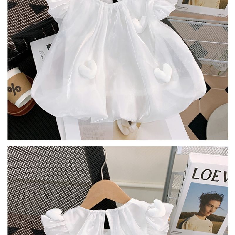 여아 여름 티셔츠, 베이비 스타일, 아동 개성, 트렌디하고 달콤한 한국판 요정 플라잉 슬리브 러브 셔츠, 베이비 셔츠스토어 가기