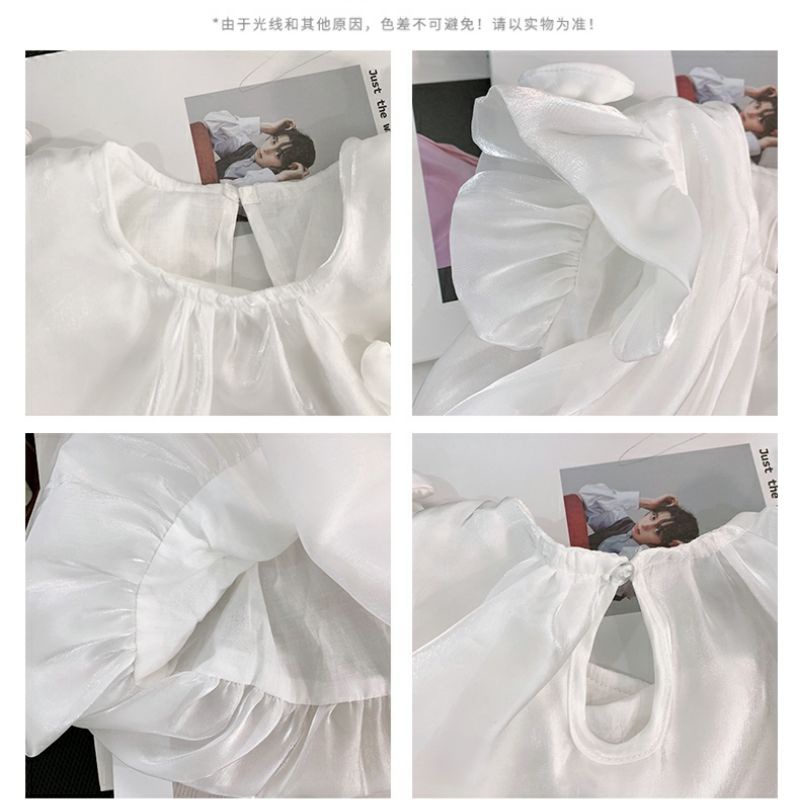 여아 여름 티셔츠, 베이비 스타일, 아동 개성, 트렌디하고 달콤한 한국판 요정 플라잉 슬리브 러브 셔츠, 베이비 셔츠