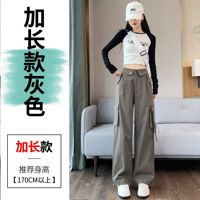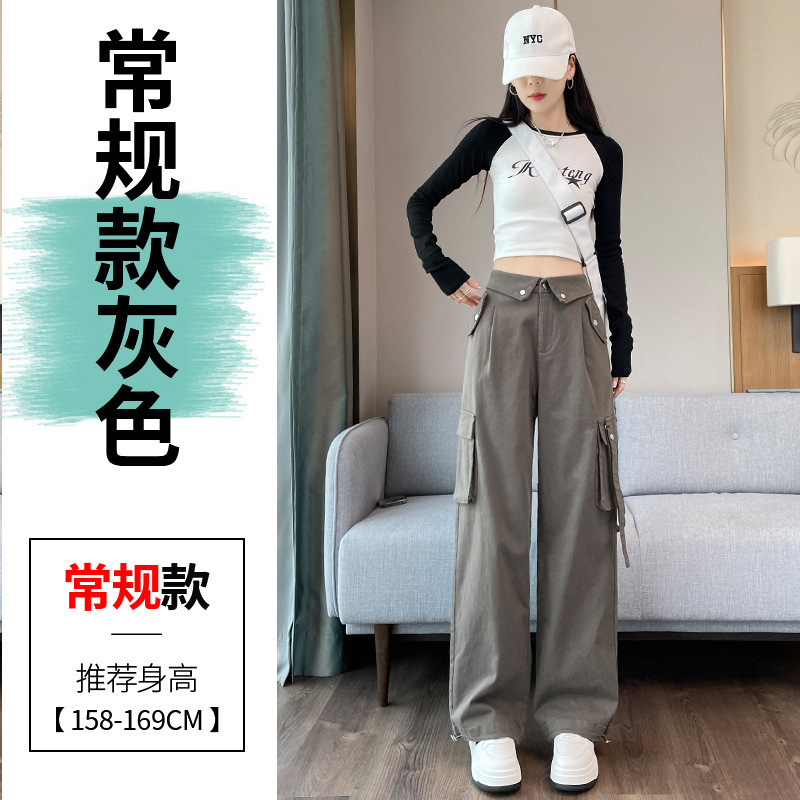 여성을위한 회색 스트리트 작업복 봄 새로운 미국 스타일 하이 웨이스트 달콤한 멋진 정장 멋진 스타일 캐주얼 스포츠 바지스토어 가기