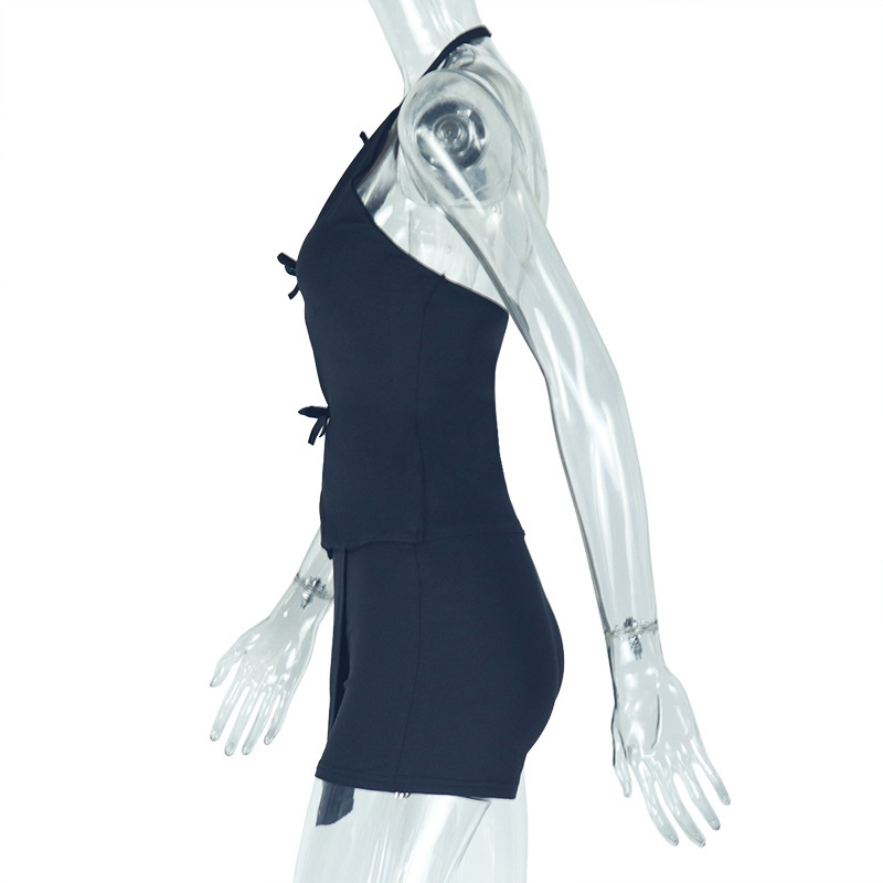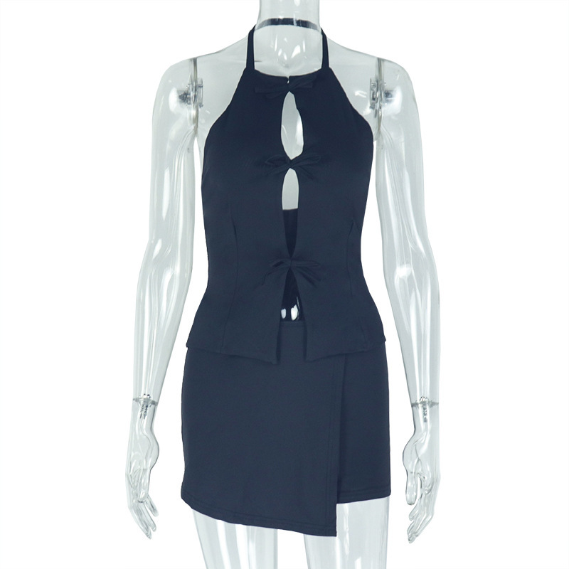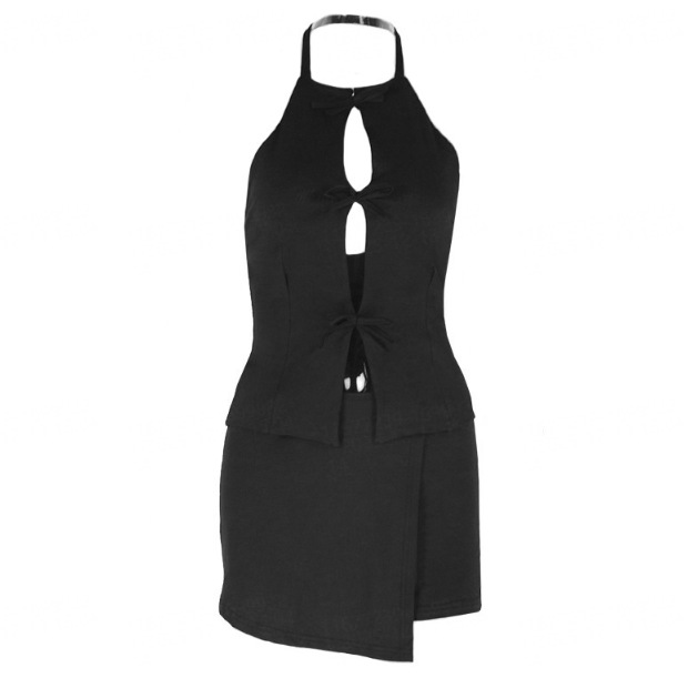 새로운 여름 유럽과 미국의 국경 기질 백리스 여성의 단색 중공 주름 가방 엉덩이 스커트 투피스 도매스토어 가기