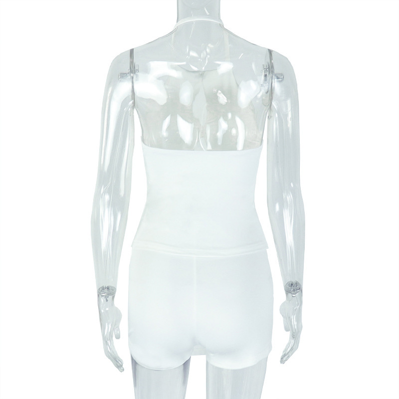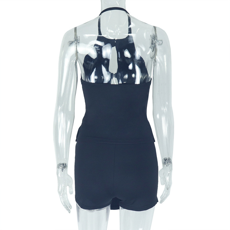 새로운 여름 유럽과 미국의 국경 기질 백리스 여성의 단색 중공 주름 가방 엉덩이 스커트 투피스 도매