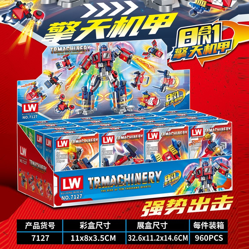 LW7127 Optimus 전투기 빌딩 블록 8-in-1 Optimus 메카 퍼즐 조립 어린이 빌딩 블록 장난감 어린이 날 선물스토어 가기