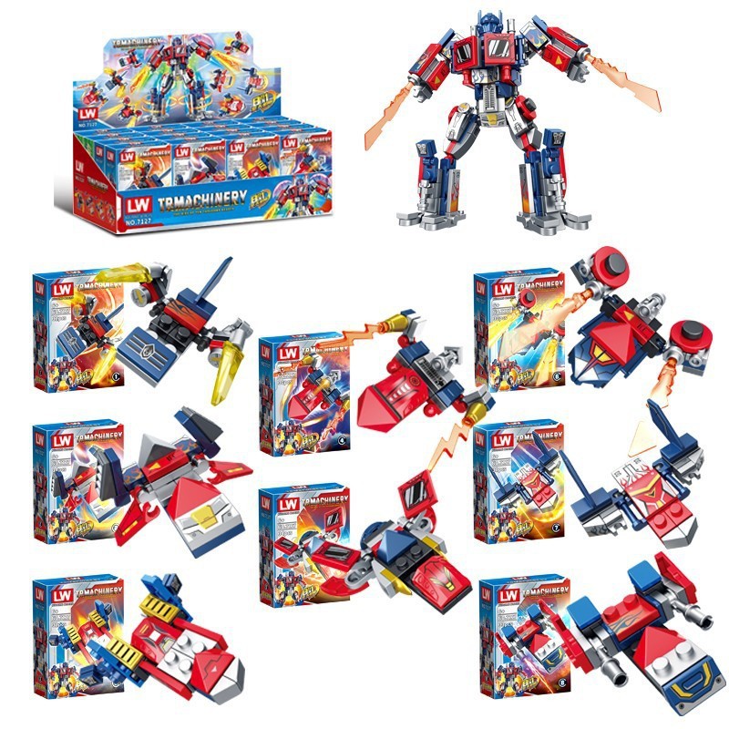 LW7127 Optimus 전투기 빌딩 블록 8-in-1 Optimus 메카 퍼즐 조립 어린이 빌딩 블록 장난감 어린이 날 선물