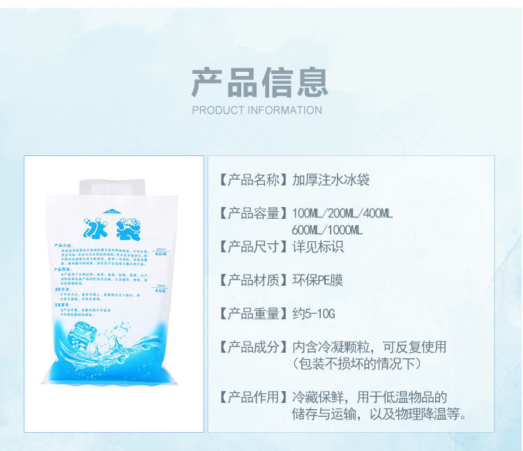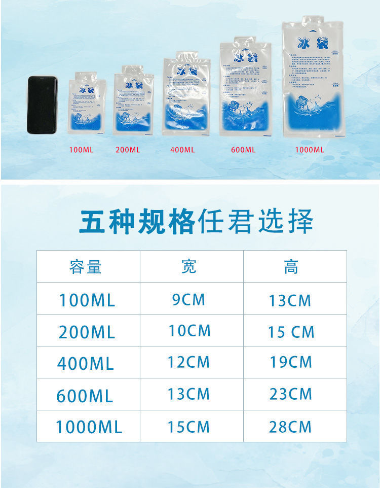 냉동식품보존 및 냉장항공냉압냉각용 일회용 자체밀봉식수냉각팩, 재사용이 가능한 냉각얼음팩