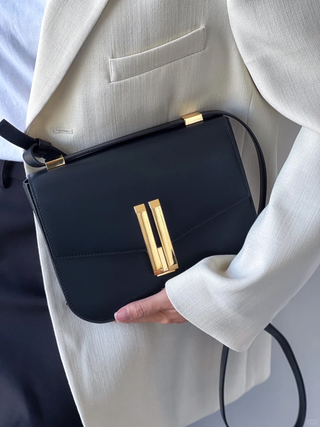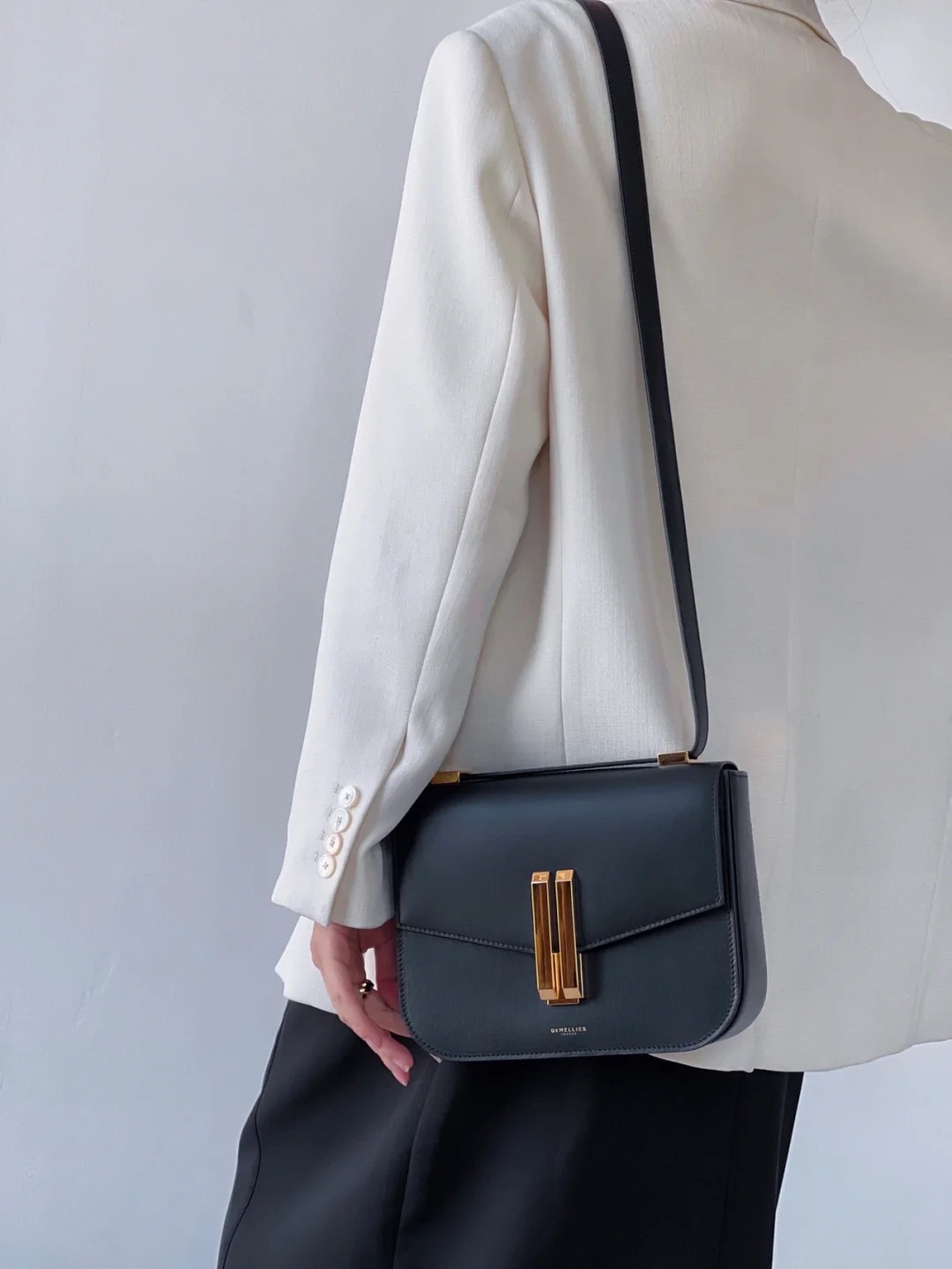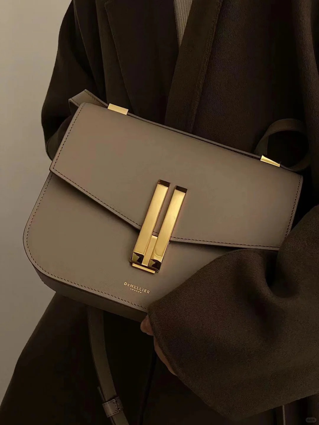 DEMELLIER 두부 가방 라이트 럭셔리 틈새 디자인 로고 정품 가죽 여성 가방 어깨 작은 사각형 가방스토어 가기